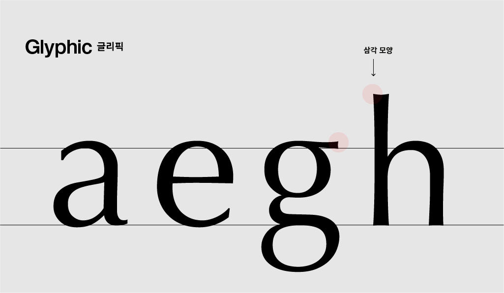 조각에 기초하여 디자인된 글리픽 서체들은 다른 세리프와 산세리프와 다른 매력을 주며 조각 혹은 세공 관련 디자인에 많이 활용되는 것을 볼 수 있습니다.