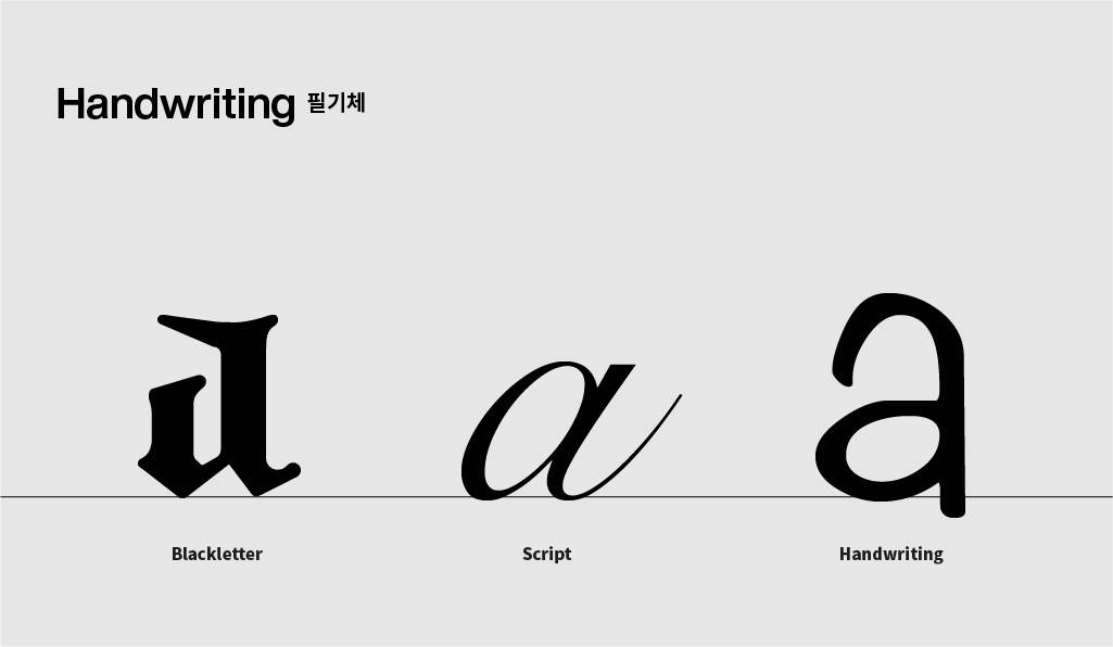 • 흘림 필기체에서 유래한 서체들로 일반적인 Handwriting 보다 격식적인 캘리그래피 서체입니다.