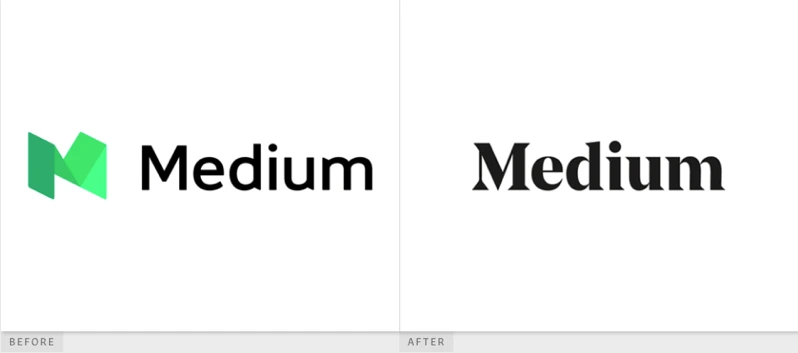 서비스 초기, 여타 온라인 플랫폼들과 같이 모던한 산세리프체를 사용했던 Medium의 이전 아이덴티티는 다소 밋밋한 인상을 가지고 있었지만, 단단하고 개성 있는 세리프체를 활용한 리브랜딩을 통해 다른 서비스들과 비교하여 시각적으로 돋보이고 개성 있다는 호평을 받았습니다