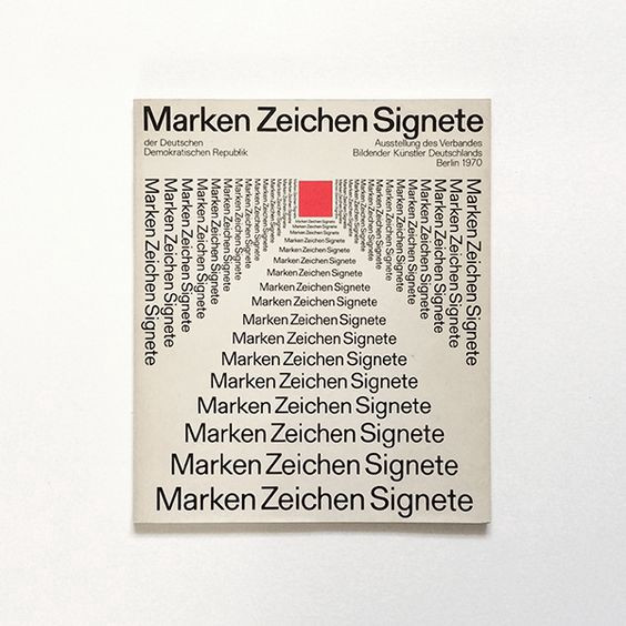 Marken, Zeichen, Signete를 위한 이 커버는 글자를 비스듬히 움직이는 것이 아니라 점진적으로 크기를 조정하고 있습니다. 이 기법은 올려다보는 것보다 안으로 들여다보는 효과는 주며, 보통 양쪽에서 같은 단어의 크기를 조절하고 반복하는 방식으로 실행됩니다. 반복은 강력할 수 있지만, 이전에 논의한 21 Lessons처럼 다양한 구절과 길이를 필요로 하는 작업물에서는 맞지 않는 방법일 것입니다.