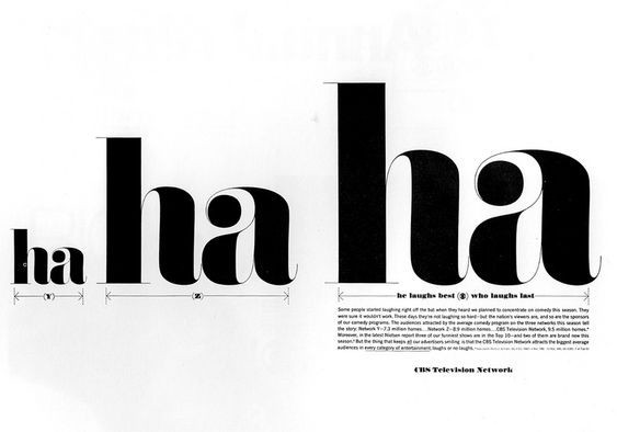저는 또한 마지막 "Ha"가 얼마나 큰지 강조하기 위해 오른쪽 열 아래의 텍스트 요소가 어떻게 크기 조정되고 배치되었는지 대해 짚고 넘어가고 싶습니다. 이 광고에서 글자만 빼고 모든 것을 없앤다고 해도 CBS의 "하"는 다른 요소들에 비해 굉장히 큰 것이 알 수 있습니다. 이 이야기의 주인공이 누구인지는 의심의 여지가 없죠.