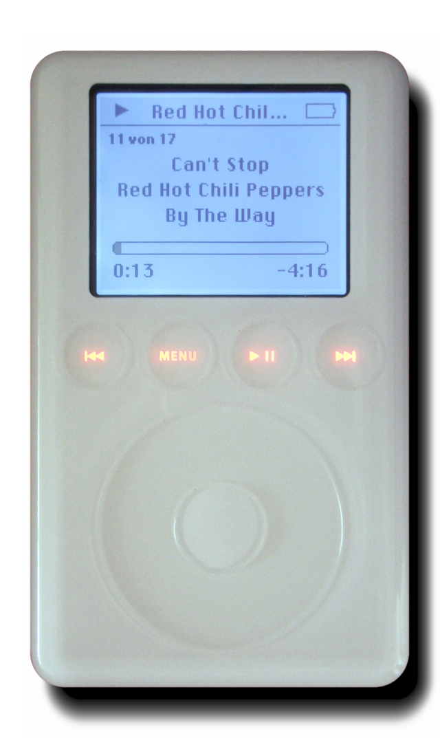 2001년 출시된 애플의 음악 플레이어, iPod은 Macintosh에 사용되었던 Chicago를 시스템 글꼴로 다시 사용했으며 다음 세대들의 iPod에서는 확장된 레퍼토리의 TrueType Chicago를 사용하며 이전 비트맵 버전 Chicago에서는 없던 그리스어, 키릴어 등 많은 문자들을 추가했습니다. 다만 당시의 아이팟에서 문자들은 Anti-Aliasing 되지 않았습니다.