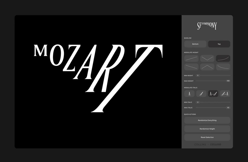 사용 예시: San Francisco Symphony (Collins), Glyphs mac font editor (Andrea Trabucco-Campos)