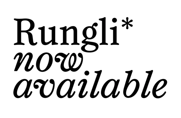 Century Oldstyle 서체에 기반을 두어 작은 사이즈의 텍스트에서는 좋은 가독성을, 큰 사이즈로 활용될 때는 독특한 디테일을 보여줄 수 있는 세리프 서체, Rungli입니다.