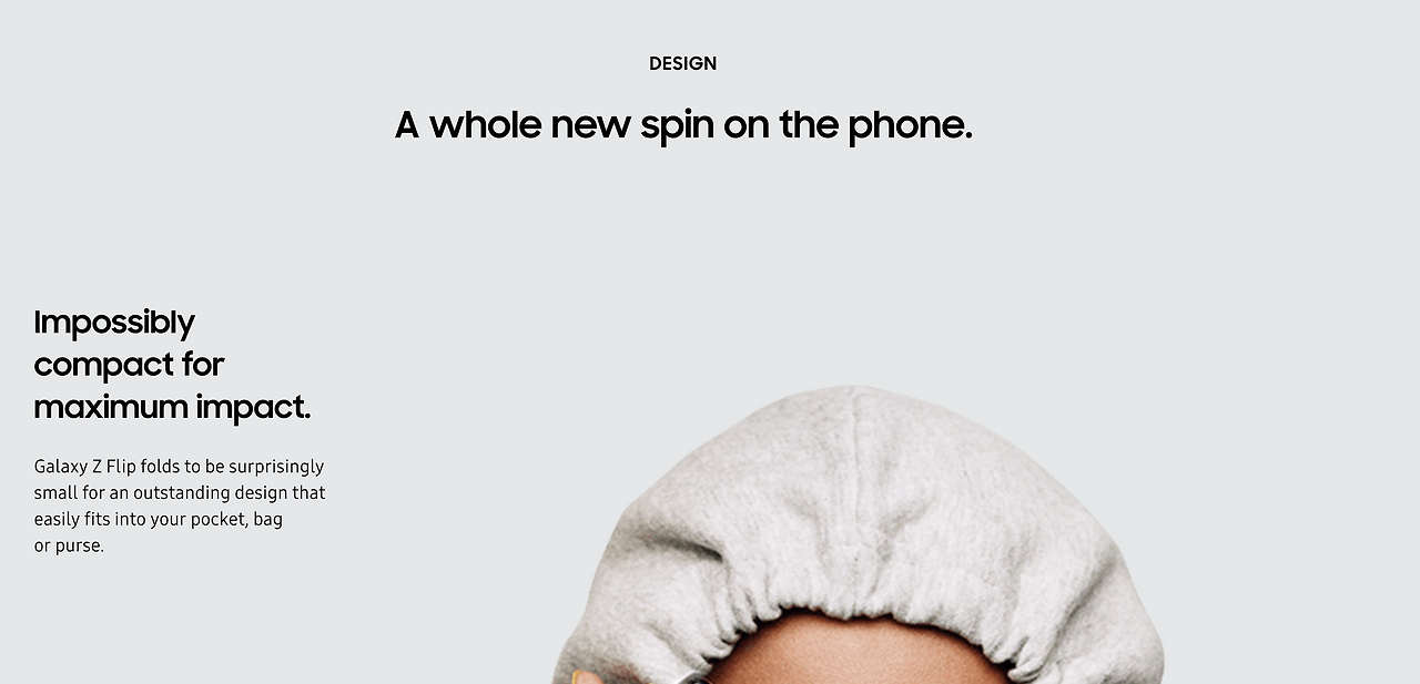 본문 텍스트가 애플에 비해 상당히 작고, 얇은 두께의 폰트로 적힌 것을 확인할 수 있습니다. 상당히 중요한 제품 설명임에도 불구하고 이목을 충분히 끌지 못합니다.