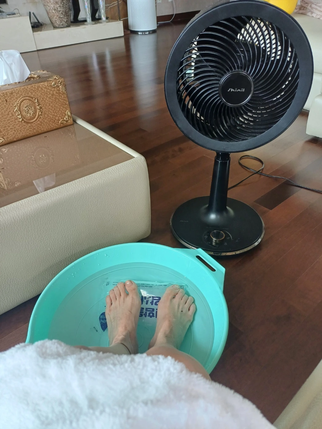 떠올린 김에 작은 통에 물을 받아 냉동실에 모셔놓은 아이스팩 몇 개를 넣어 발을 담그니 얼음물에 시린 발이 등골까지 오싹해진다. 곁에 앉은 선풍기와짝을 맞추니 구천동 계곡이 따로 없다.