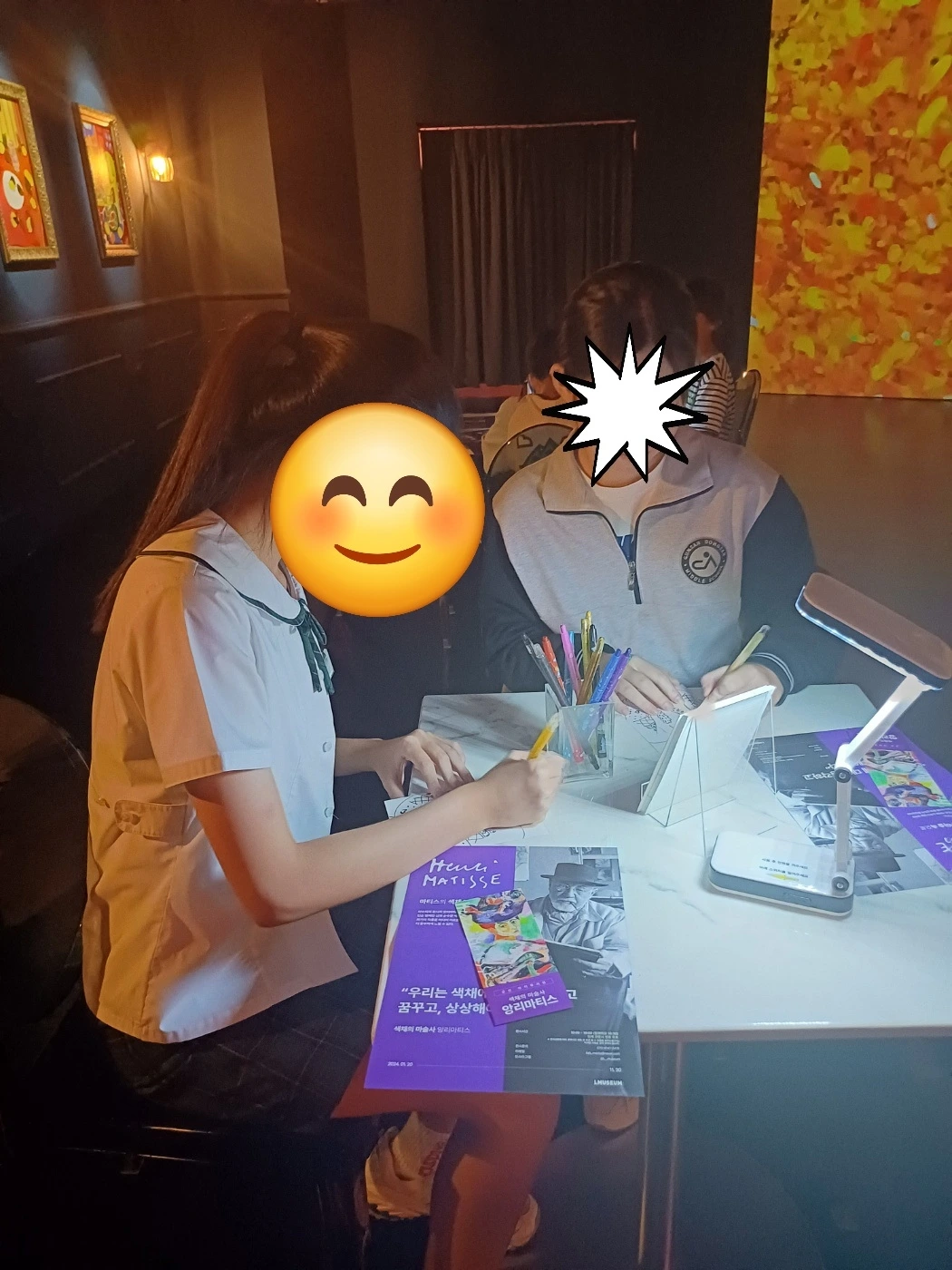 [색채의 마술사 앙리 마티스]란 제목의 미디어 아트전시였다. 초등저학년부터 중학생까지 다양한 연령의 제자들이지만 미술 작품을 이해하기 쉽게 감상할 수 있는 기회여서 꼭 경험하게 하고 싶었다. 그들 모두 부모님과 와본 적 없다는 말에 잘됐다 싶었다.