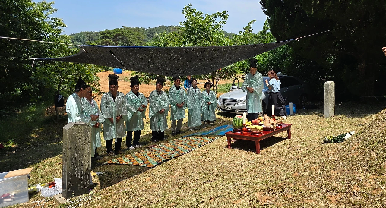 추모제에 모인 사람들은 제례복을 갈아입고 차려놓은 제사상 앞에서 이날 행사를 위한 준비 사항들을 확인하고 있었다. 얼마 전 알게 된 문우의 모습에 반갑게 인사를 하고 나자 누군가가 대뜸 제례복을 입으라며 옷을 내밀었다. 생각할 겨를도 없이 주섬주섬 차려입은 제례복 차림의 내 모습이 누워계신 작가님께 누가 되지 않을까 내심 신경이 쓰이며 조심스러워졌다. 추모제는 참석한 모두의 삼배를 시작으로 추모제 위원장님의 축문 낭독이 이어졌고 여러 번의 재배와 헌작 그리고 음복등으로 진행되었다. 추모제는 단출했지만 모두가 진심의 모습이었다.