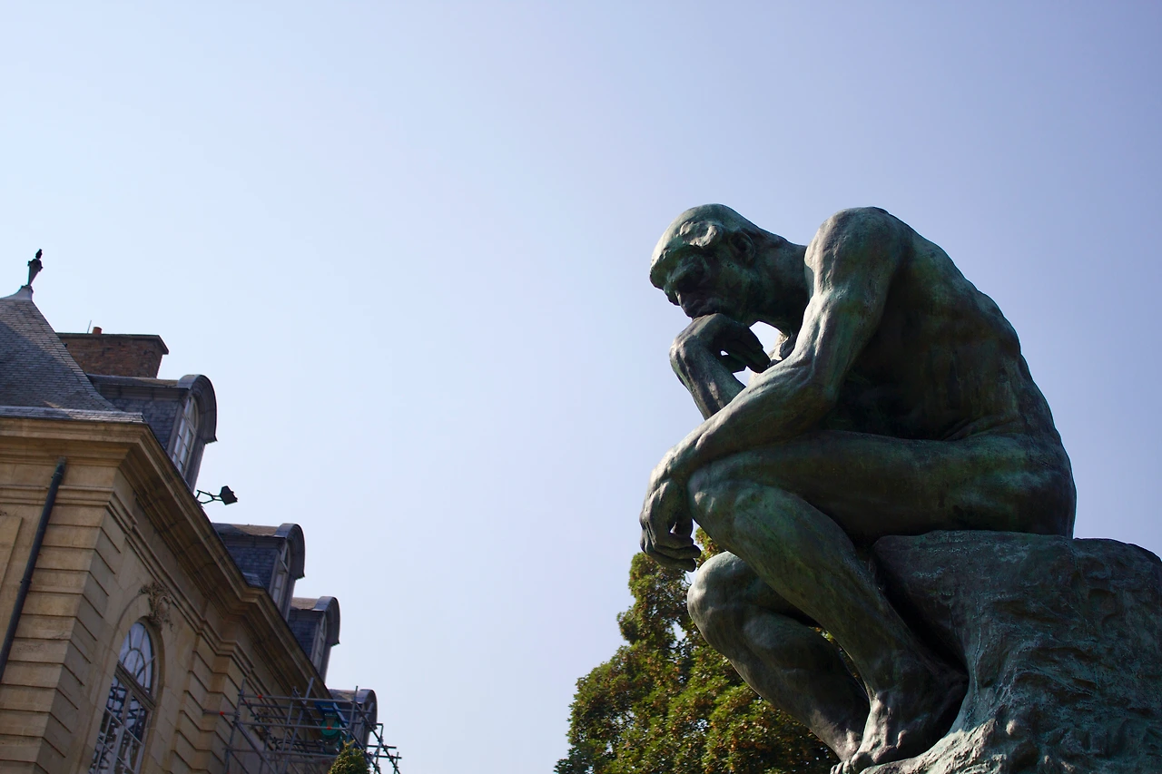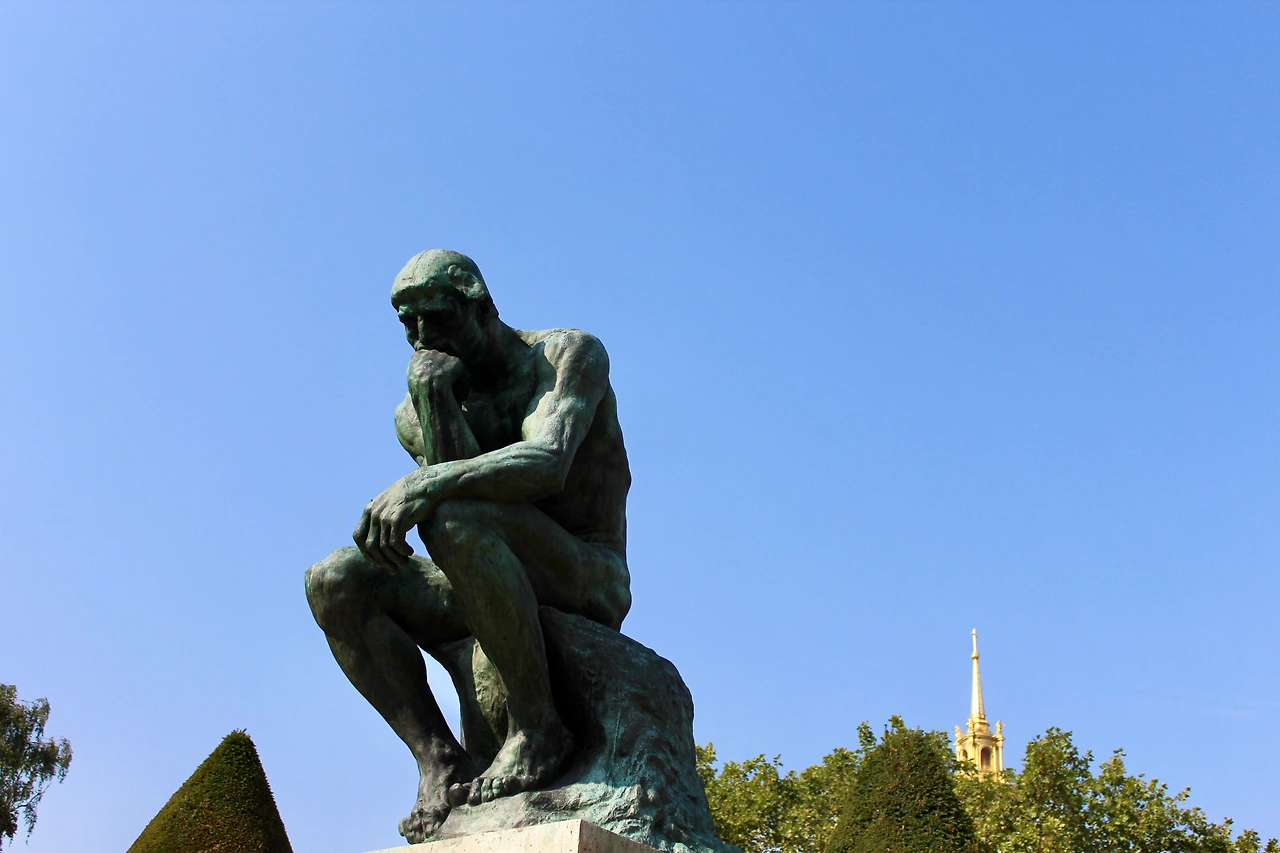 당초 로댕은 '지옥의 문' 작품 속에 있는 조각으로 '생각하는 사람'을 만들었다. '지옥의 문'에는 말 그대로 지옥으로 향하는 입구에 선 인물 조각상들이 어우러져 있다. 인생 최후의 순간이 자아내는 고통과 번뇌, 죽음의 형상을 새겨 넣었다. 단테의 '신곡'에 영향을 받아 만들어진 작품으로 알려져 있다. 이후 '생각하는 사람'은 1888년 '지옥의 문'에서 탈출해 독립적인 조각상이 되었다. 이로서 '생각하는 사람'은 지옥 혹은 심판으로 상징되는 종교성을 상당 부분 벗어던졌다. 관람자로 하여금 다양한 관점과 맥락의 '생각'에 대해 물음을 던져볼 수 있게 하는 보편성을 획득했다. 지금 내게 생각은 고독, 우울, 불안, 걱정의 제스처만으로 강하게 다가온다.