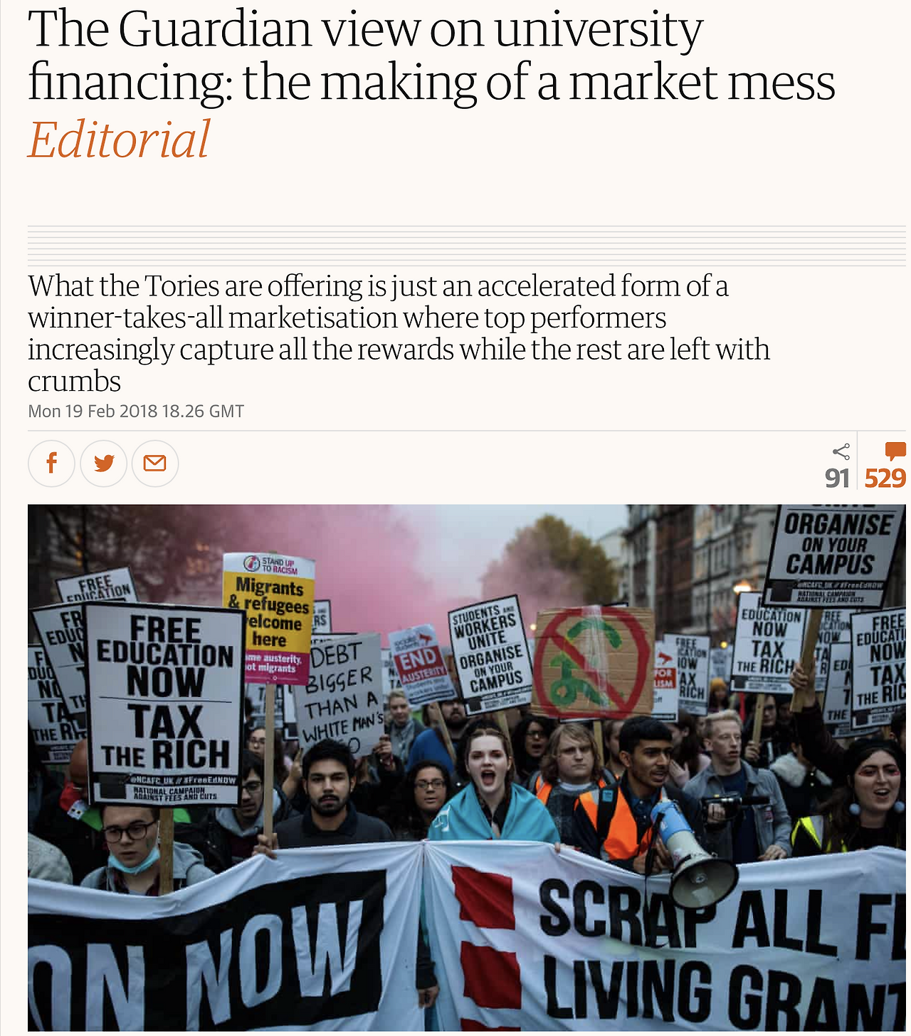 그리하여 “등록금 빛에 허덕이는 학생들”, “‘승자독식’ 대학 시장화 가속화”, “상위 대학은 대부분의 보상을, 하위대학은 부스러기 정도만 가져가는 구조”, “잘 나가는 대학의 부총장(vice-chancellor)은 막대한 수익과 보너스를, 대부분의 대학 구성원들은 불안정 임시직에 놓이는 상황” 등이 비판적으로 대두되고 있다.