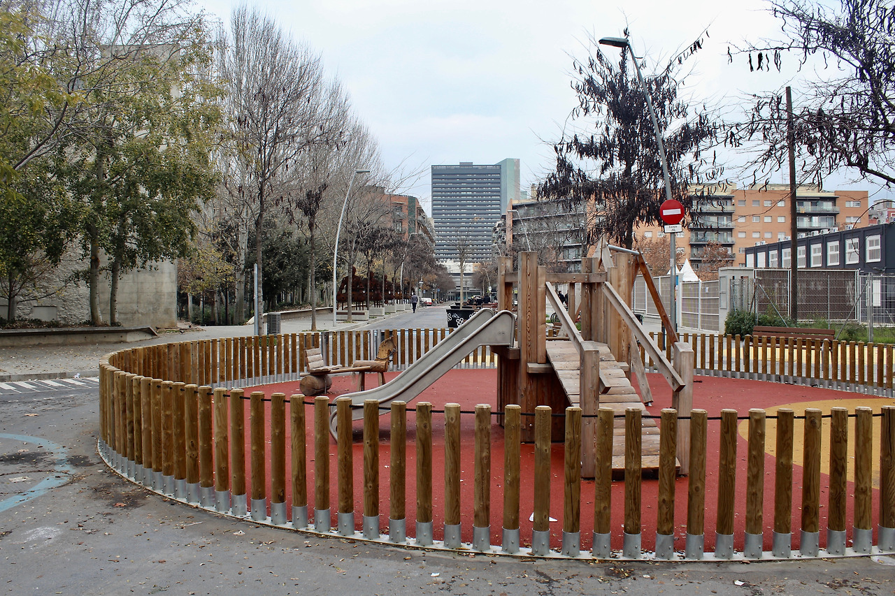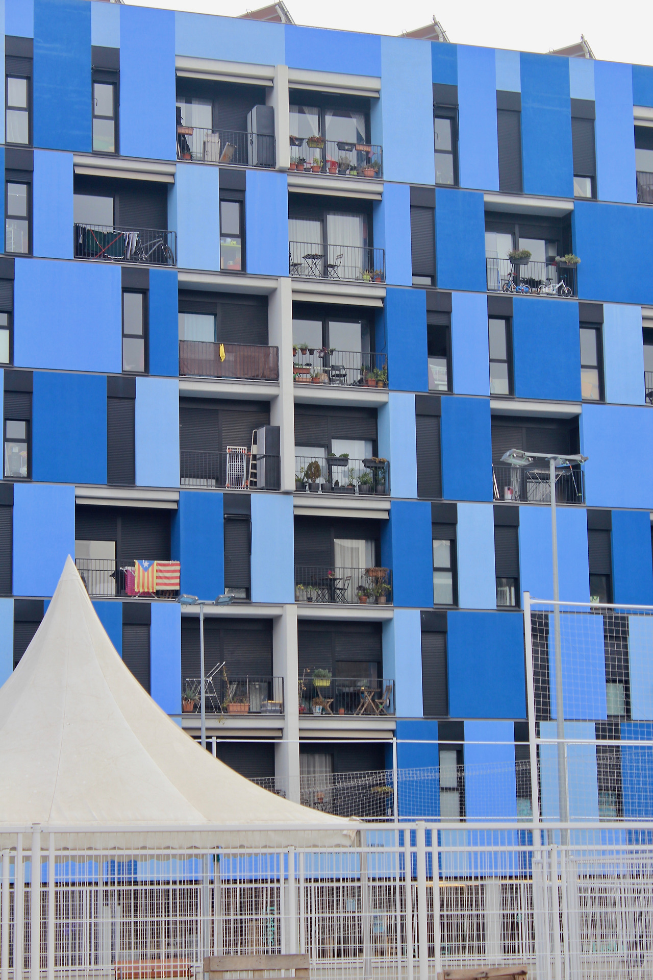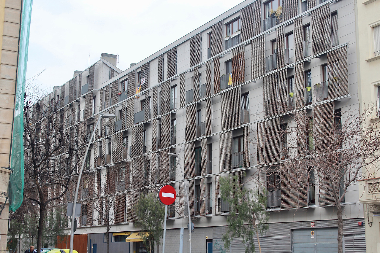 자동차가 사라지자, 거리가 맞닿는 사거리 교차로는 제법 넓은 공간이 생겼다. 둥그렇게 나무 울타리를 친 아이들의 놀이터 공간으로 재탄생했다. 시소와 그네를 타는 아이들의 미소는 싱그러웠다. 그를 안심하며 지켜보는 부모의 표정도 여유로웠다. 블록 중간에 자리한 공공임대주택(Social housing)은 화려함은 없지만 누추함도 없었다. 소탈한 건축물 사이로 곳곳에 보이는 주민들이 재배 중인 푸른 식물들, 외벽에 색깔을 넣은 포인트들, 베란다에 내건 까탈루니아 깃발 등은 우리의 천편일률적인 임대아파트와 다른 개성과 정감을 주었다. 산뜻한 블루컬러로 치장한 또다른 주택은 젊음의 기운 또한 선사했다. 앞서 프란세스크가 안내할 때 "특히 사회주택 등으로 유입된 청년과 젊은 부부들에게 슈퍼블록은 매우 호응이 좋다"고 말한바 있다.