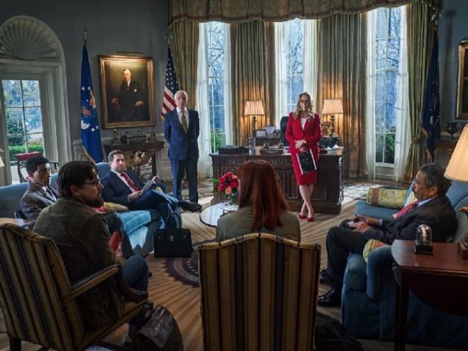 그렇다면 대통령과 베시의 반대편에서 ‘Look up’을 외치는 사람들은 더 나은 사람들일까? 글쎄. 대답하기가 좀 어렵다. 이 영화에서 운석을 발견한 사람이 천문학 박사인 랜들이 아니라 그의 제자인 케이트였다. 왜냐하면 시대의 위기를 가장 먼저 발견하고, 체감하는 이들이 바로 젊은 세대이기 때문이다. 케이트로 대표되는 젊은 세대는 누구보다 빠르게 자신들의 시대에 닥친 위기를 사람들에게 알리고 해결하기 위해 노력한다. 하지만 그런 그녀의 목소리는 음모론 정도로 치부되며 희화화된다.