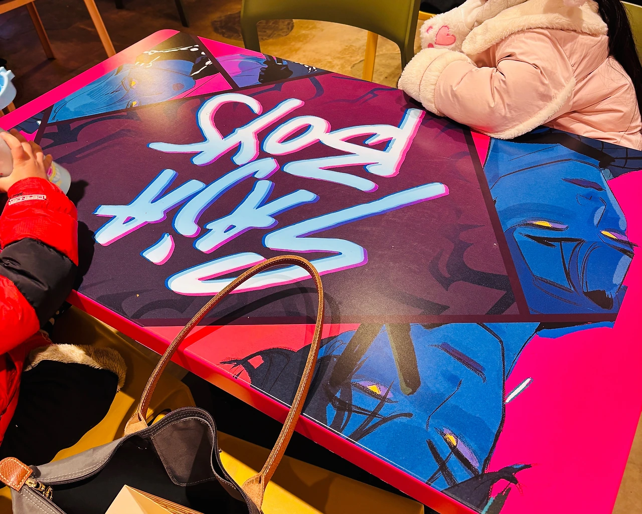 눈물을 흘리며 케데헌을 세 번이나 본 나는 놀이동산 속 케데헌 마을이 참 마음에 들었다. 끝없이 반복되는 케데헌 ost를 들으며 벽마다 붙어있는 사자보이즈들을 보는 재미도 상당했다. 아직 낮잠이 필요한 둘째는 결국 케데헌 식당에서 불편하게 잠이 들어버렸다. ‘하지만 나는 너무 신이 났는 걸..‘ 아이에게 괜히 조금 미안해진다.
