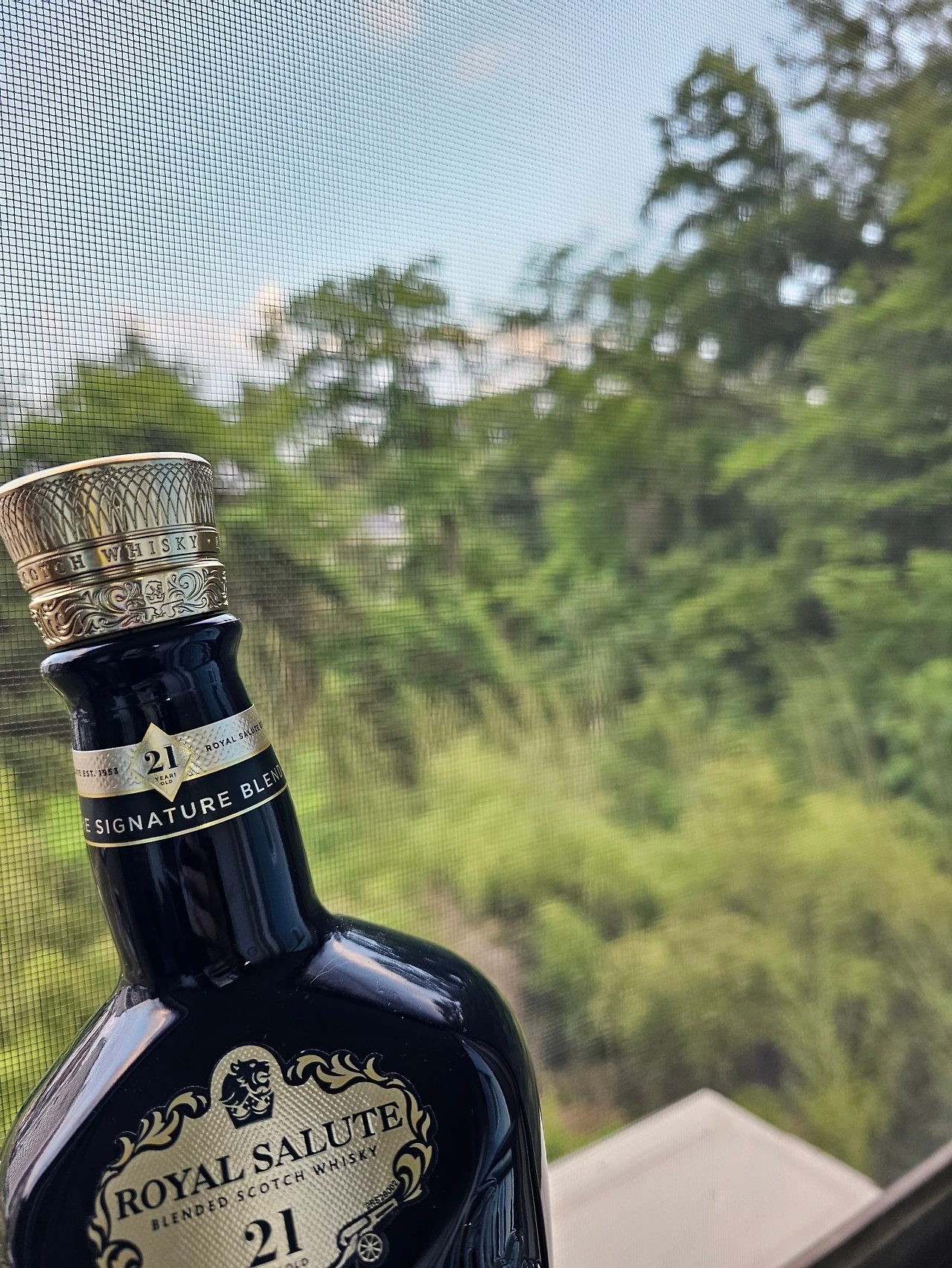 주말에 해를 봐서일까. 집에 있는 캠핑의자를 베란다에 펼치고 앉았다. 해가 중천을 지나 이제 저녁으로 가는 즈음, 요즘 같은 선선한 날씨에는 집에서 가끔 마시는 로얄 샬루트 21년을 꺼내본다.