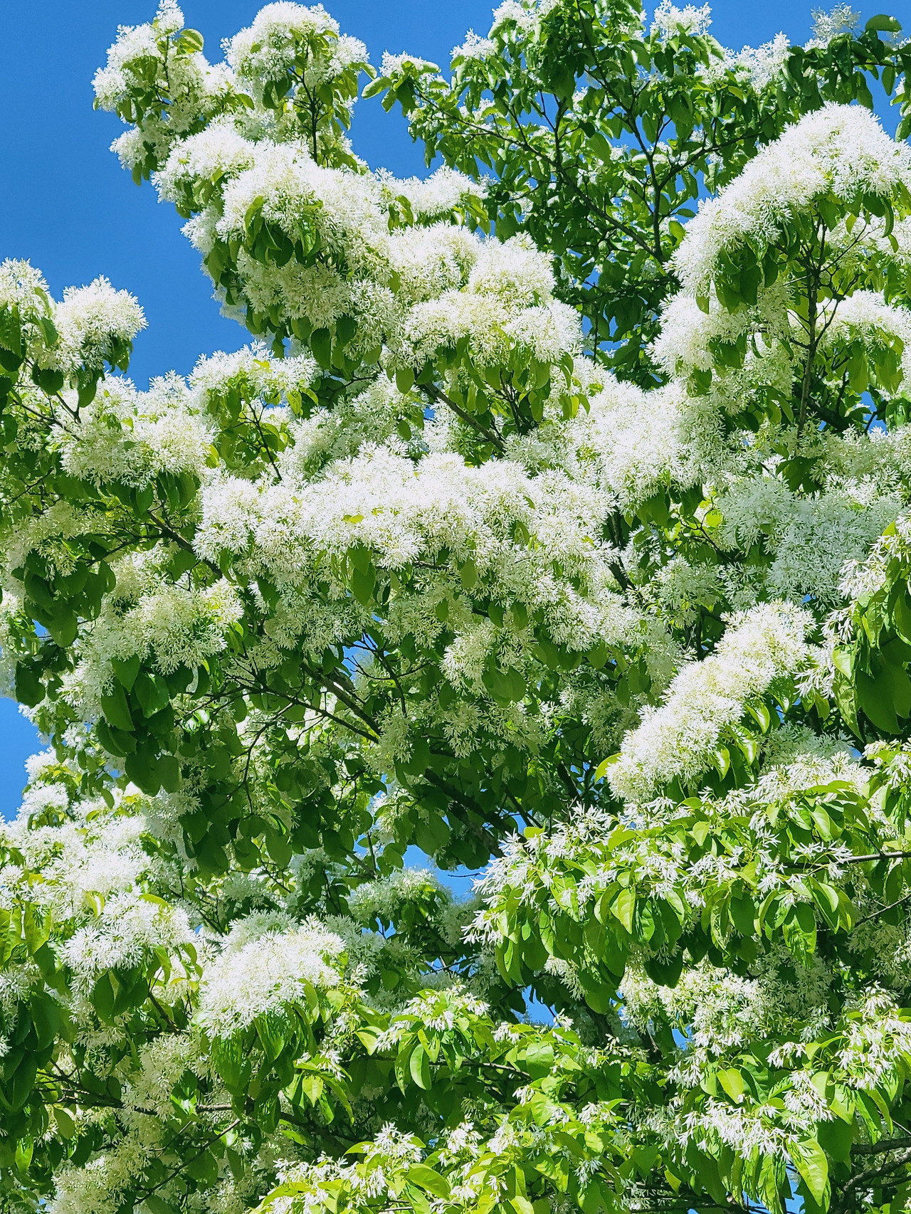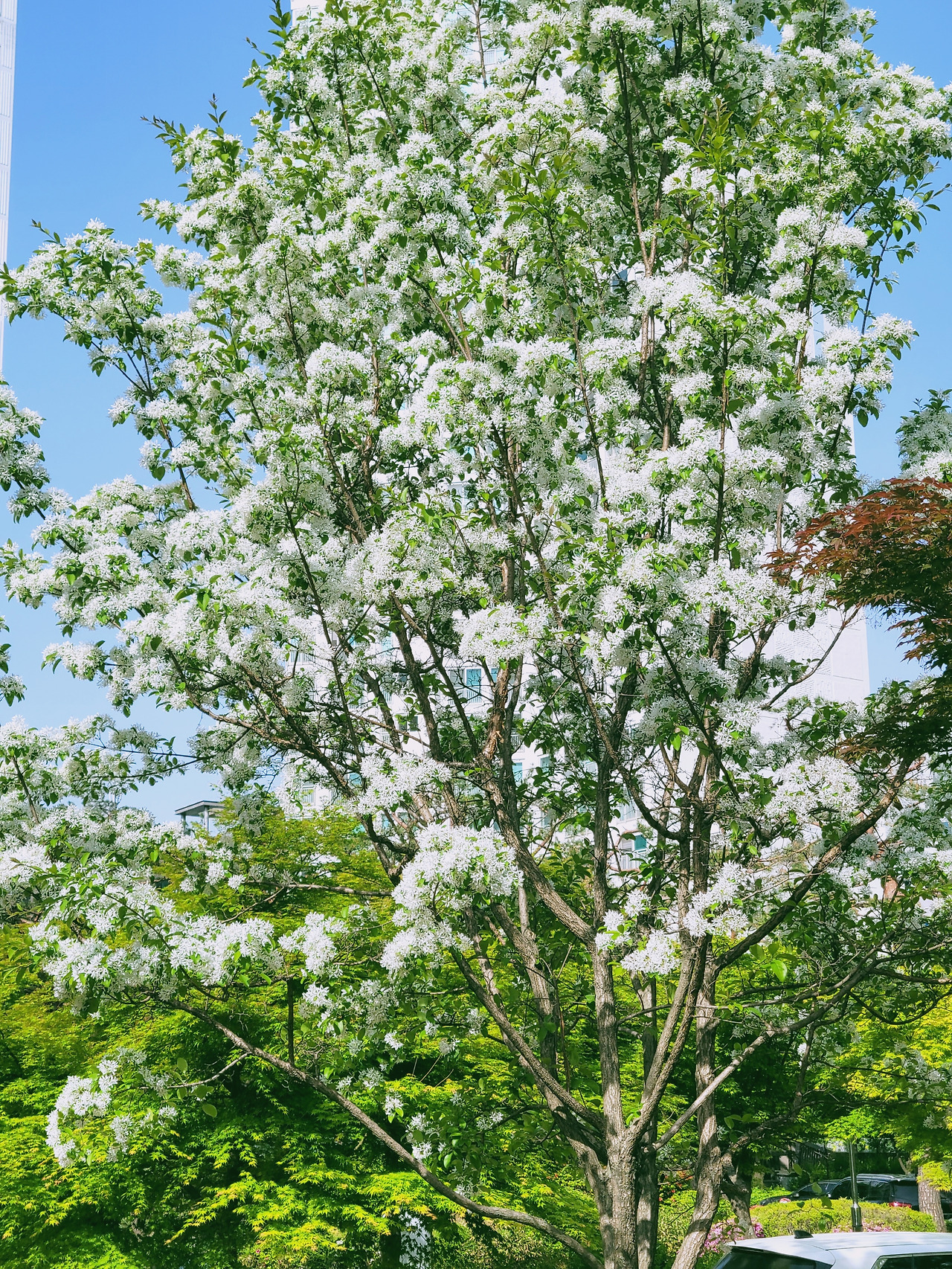 집에 들어와 뭉텅이 꽃을 피운 하얀 꽃나무가 뭔지 네이버 사진 검색을 해보니 이팝나무란다. 멀리서 보면 뭉텅이로 핀 하얀 꽃송이가 사발에 소복이 얹은 흰쌀밥처럼 보인대서 '이밥나무'라고 하던 것이 변형되어 '이팝나무'가 되었단다.