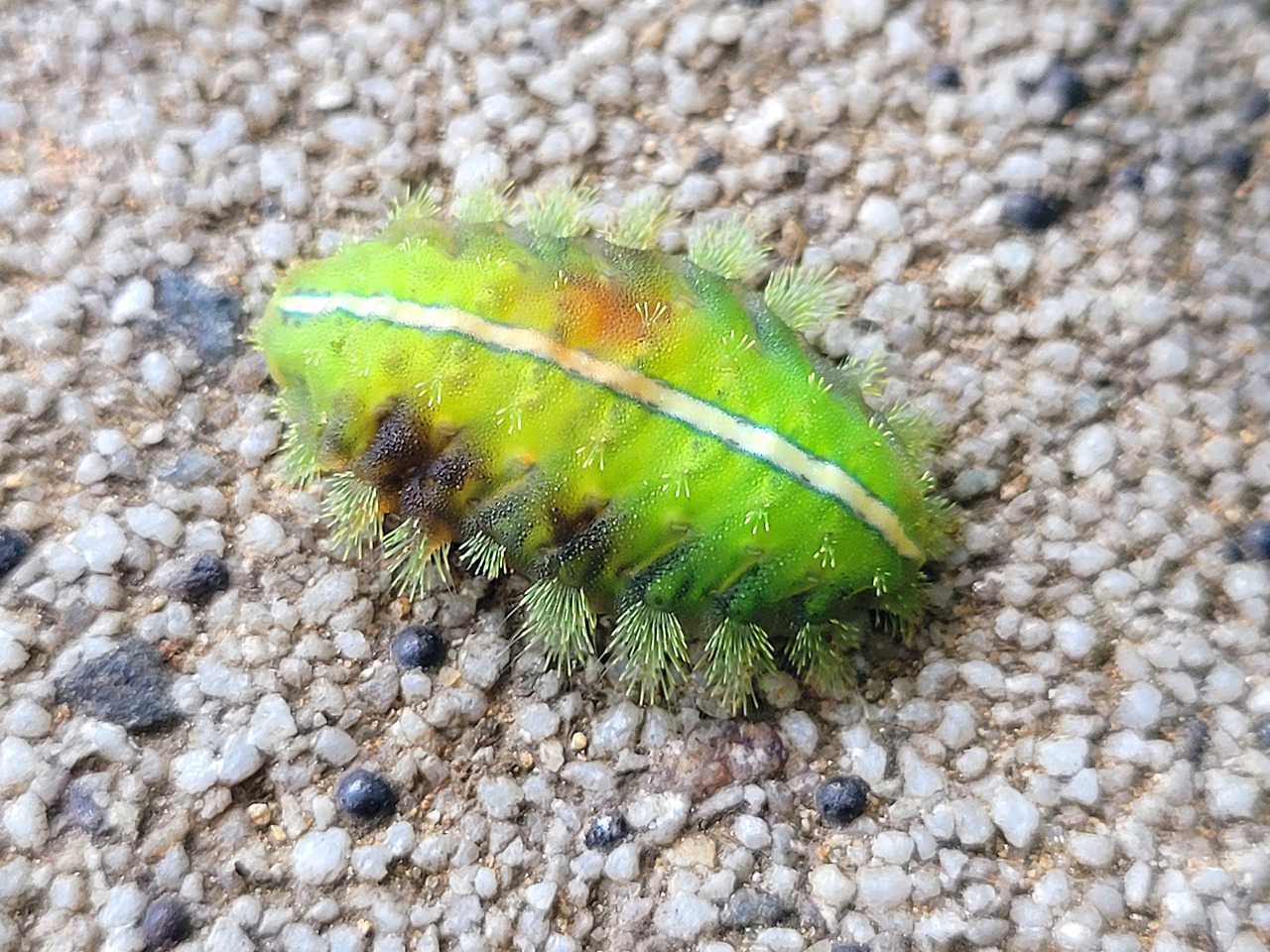 그나저나 쐐기나방 애벌레는 몸에 까칠까칠한 가시가 솜털처럼 돋아 있는데 보기에는 복슬복슬 이쁘지만 독이 있어 쏘이면 저리다 못해 감각이 마비될 정도로 아프다고 하니,