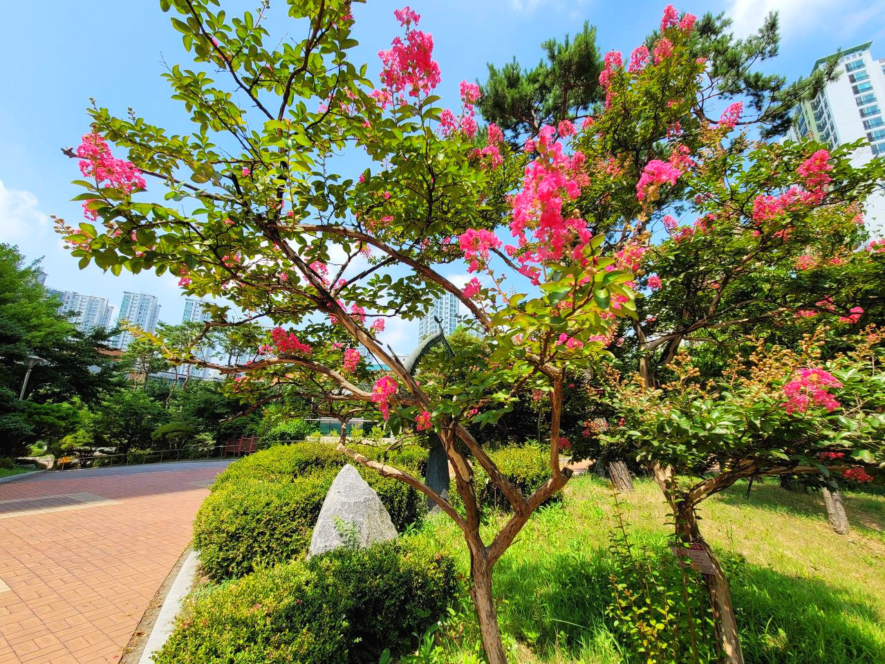 배롱나무 이야기를 쓰기 위해 여러 달 자료를 모으고 반려견들과 산책을 다니며 사진을 모았습니다. 아파트 화단의 배롱나무에게 너의 이야기도 써줄게 말하며 꽤 오랫동안 자료를 모았더랬지요. 그 와중에 지난 8월 초입 순천과 여수 일대를 여행하게 되었습니다. 순천에 들어서자마자 눈앞에 펼쳐진 광경에 말을 잊지 못했습니다. 순천시에서 계획적으로 식재한 것인지 어쩐지는 모르겠지만 순천시 도로변의 가로수가 전부 배롱나무였으니까요. 그때의 놀라움이란.