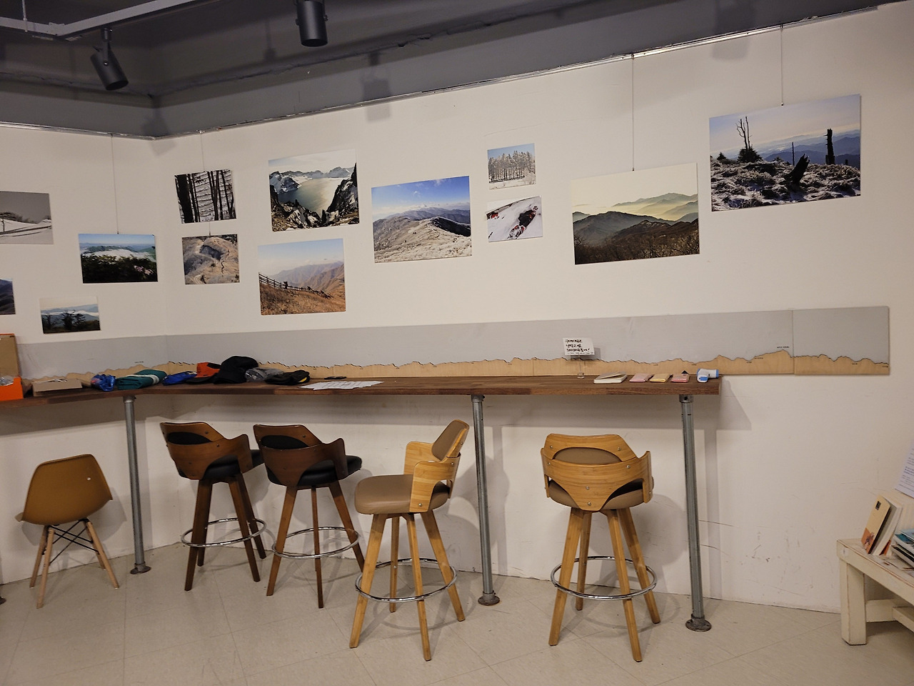 [백두 종주 탐사대]는 이우 학부모라면 이미 다 알고 있을 거라는 생각이 듭니다. 이우 새내기 학부모인 저 역시도 아이가 입학하기도 전부터 이야기를 들었으니까요. 백두센터는 이우 학부모들이 정기적으로 모일 수 있는 장소가 필요해서 대여한 공간이라고 합니다. 공간이 넓어서 규모가 큰 모임도 수용할 수 있고, 무엇보다 백두대간 종주 탐사대의 활동 사진과 이야기를 담은 책자가 전시되어 있어 [이우백두센터]만의 아우라가 가득한 장소였습니다. 학부모 모임을 위해 방문했을 때는 몰랐는데 역시 뭔가 역동적이면서 파노라마적이고 자연의 벅찬 감동이 느껴지는 그런 곳이었습니다(전시된 사진 때문인 것 같아요^^) 탐사를 다녀온 백두대간에 배지를 달아서 만든 지도 역시 인상 깊었습니다. 비록 탐사대원은 아니지만 보고 있으면 뿌듯하고 다음 산행도 의쌰의쌰 해볼까 하는 생각이 들 것 같았습니다.
