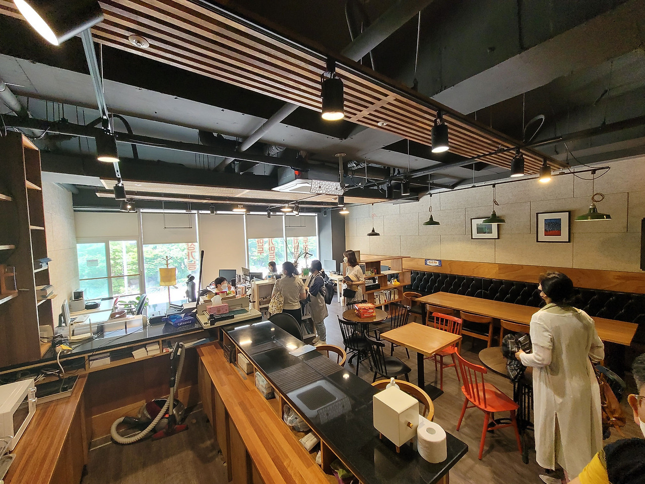 시계방향으로 사다리 입구>사다리 안쪽 공간에서 바라본 입구쪽 회의실>현재 사다리에서 일하고 있는 직원들>셀프 커피머신, 착한 커피가격> 사다리 전경