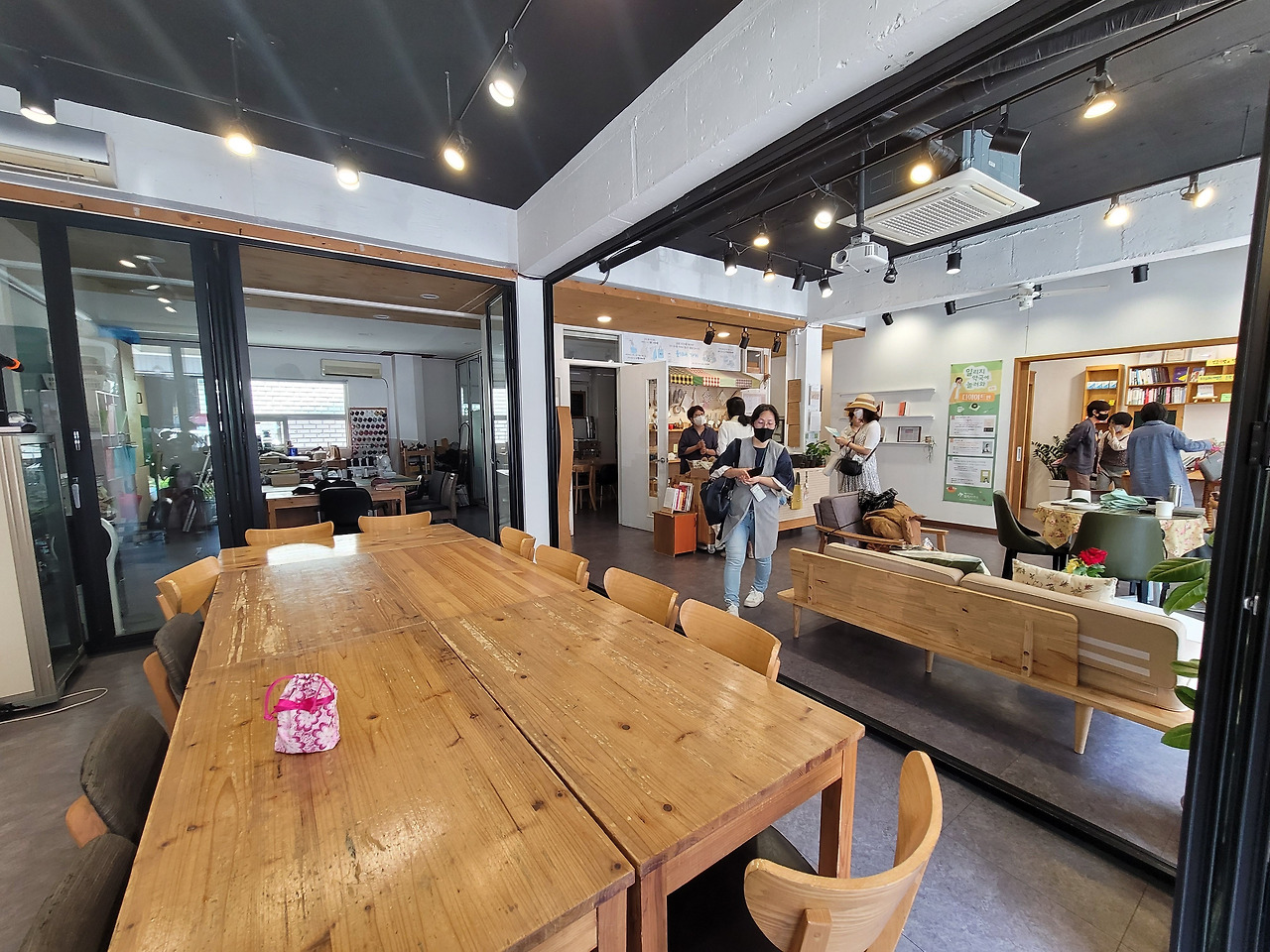 [파지사]유가 파지사유인 이유는 동천동 874-6번지를 한자 발음대로 표기하면 파지사유(破之思有, 破之私惟, 破之事由...)로 읽히기 때문이래요. [우주소년]에서 한 블록 건너에 있는 파지사유에서는 때마침 [문탁]과 [월든], [일리치 약국] 등 다양한 장소의 마을 주민들이 모여 식사를 하고 계셨습니다. 죄송한 마음으로 조심조심 들어가는데 듣기만 해도 화통하고 유쾌한 목소리를 지니신 파지사유 공동 대표님께서 주저 없이 저희를 안내해주셨습니다.