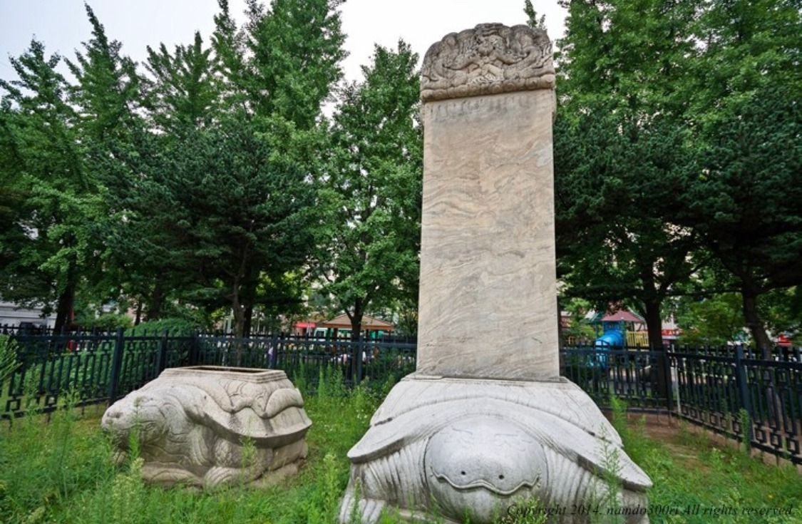 잠실역 3번 출구에서 성남대로를 따라 석촌호수가 쪽으로 걷다 보면 대로변 옆에 '삼전도비'가 있다. 롯데월드와 샤롯데극장, 롯데호텔의 장엄함에 밀려 지나가는 행인의 눈길이 잘 닿지 않지만 아픈 역사의 흔적을 되새기며 여전히 그곳에 존재하고 있다.
