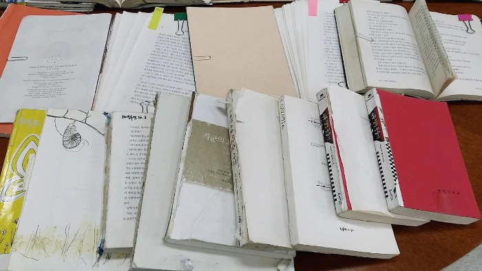 도대체, 왜 이렇게까지 했을까 싶은 파손 책들이 있다. 칼로 베어내고 가위로 자른 책들이다. 책 읽는 시간이 지루했을까. 단순히 무료했을까. 칼질 연습을 했을까. 잘라서 간직하고 싶도록 마음에 드는 문장이었을까. 온갖 추측을 해보지만 답은 모르겠다. 단정할 수는 없지만 장난이 지나친 학생들 소행으로 본다. 학생이 아니면 미성숙한 교직원이다. 처음 학교도서관에 왔을 때 누가 언제 했는지도 모르는 절취 도서를 보고 경악했다. 이런 책들은 보수할 희망이 없어 파손도서로 분류했다가 폐기한다.