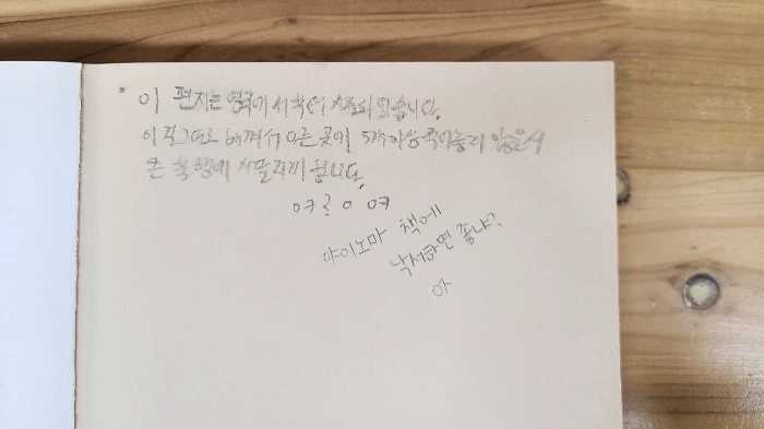 개중에 피식 웃음이 나는 낙서도 있다. ‘이 편지는 영국에서부터 시작되었습니다. 다른 곳에 5개 이상 적어놓지 않을 시 큰 불행에 시달리게 됩니다.’ 2021년 중학생도 행운의 편지를 쓴다. 이 낙서 아래 누군가 ‘책에 낙서하면 좋냐?’고 썼는데 나도 묻고 싶다. 그러는 너는 좋니.