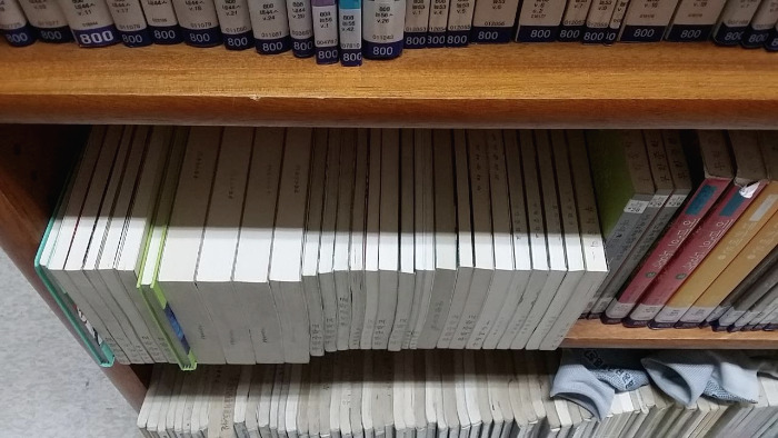 낡은 서가는 선반을 지지하는 핀이 툭하면 빠졌다. 핀이 빠지면서 선반이 기울고 그 선반에 있는 책들은 바닥으로 떨어졌다. 선반을 조금만 잘못 건드려도 책이 떨어졌다. 서가에 기대어 이야기하던 학생들은 하루 한 번은 책을 떨어뜨렸고 떨어진 책들을 대충 쌓아뒀다. 구석진 서가에 있던 학생 중에는 책등이 위로 가게 방향을 바꿔놓거나 책등이 아래로 가게 방향을 바꿔놓기도 했다. 책을 만지작거리면서 노는 학생들이었다.