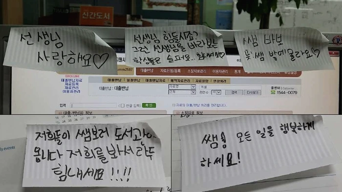 적성에 맞는 일을 해서 만족도가 높지만, 무엇보다 필요함은 일을 대하는 마음이다. 마음을 다해 일하면 그 마음이 전해져 내게 다시 돌아온다. 처리할 일이 많아 힘들고 지친 나를 보고 잠시 자리를 비운 사이 학생들은 모니터에 응원 쪽지를 남긴다. 몸살감기가 났을 때는 아프지 말라며 쪽지를 남긴다. 바빠 보이는 내게 힘을 내라며 쪽지를 남긴다. 학생들 마음이 온전히 나에게 배어든다.