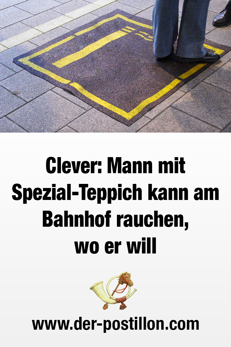이 포스터 속 주인공은 실제 인물일 것이다. 이 43세의 독일 남성은 보다시피 약 1미터 넓이의 정사각형 휴대용 카펫을 들고 다닌다. 그래서 기차를 기다리다가 흡연을 하고 싶을 때 이 카펫을 바닥에 털썩 깔아주면, 마치 마법사의 손처럼.. 1미터 넓이의 흡연구역이 급조된단다. 이러한 행위 역시 풍자의 퍼포먼스로 비친다.
