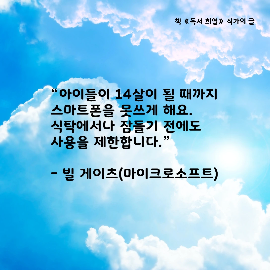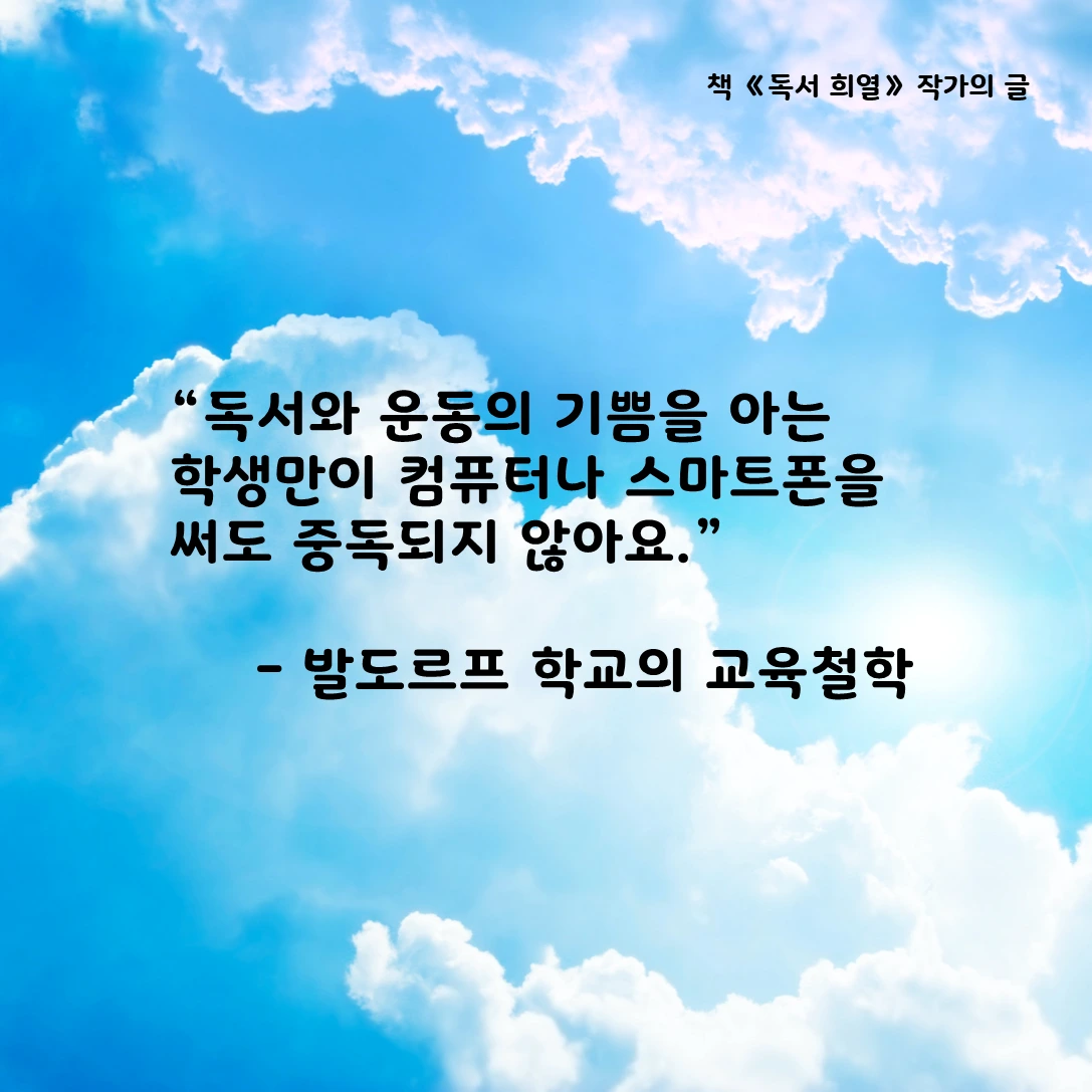 "독서와 운동의 기쁨을 아는 학생만이 컴퓨터나 스마트폰을 써도 중독되지 않습니다."