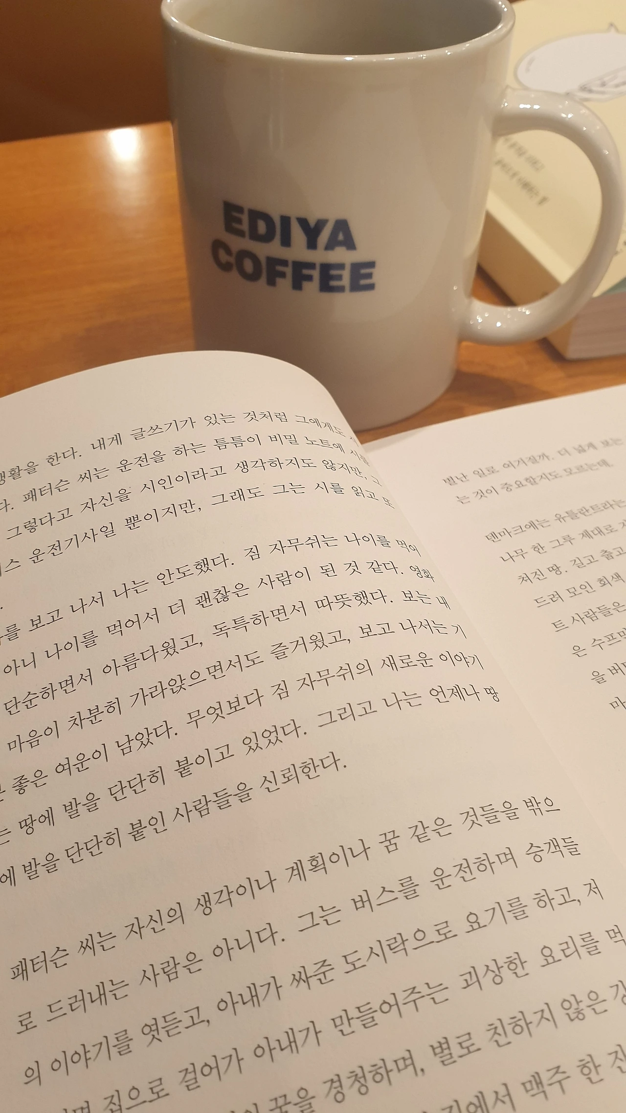 기한만료를 앞둔 커피쿠폰을 핑계로 퇴근길 몸을 돌려 집앞 카페에 눌러앉았다. 전화기 너머로 아이들은 간만에 엄마가 짜장면 배달시켜준다고 좋아한다. 이 저녁, 티비와 짜장면으로 두 아들은 퐁실퐁실 살이 오를테고 엄마는 혼자 커피와 책을 먹으며 두둥실 여유로움을 만끽할거다.
