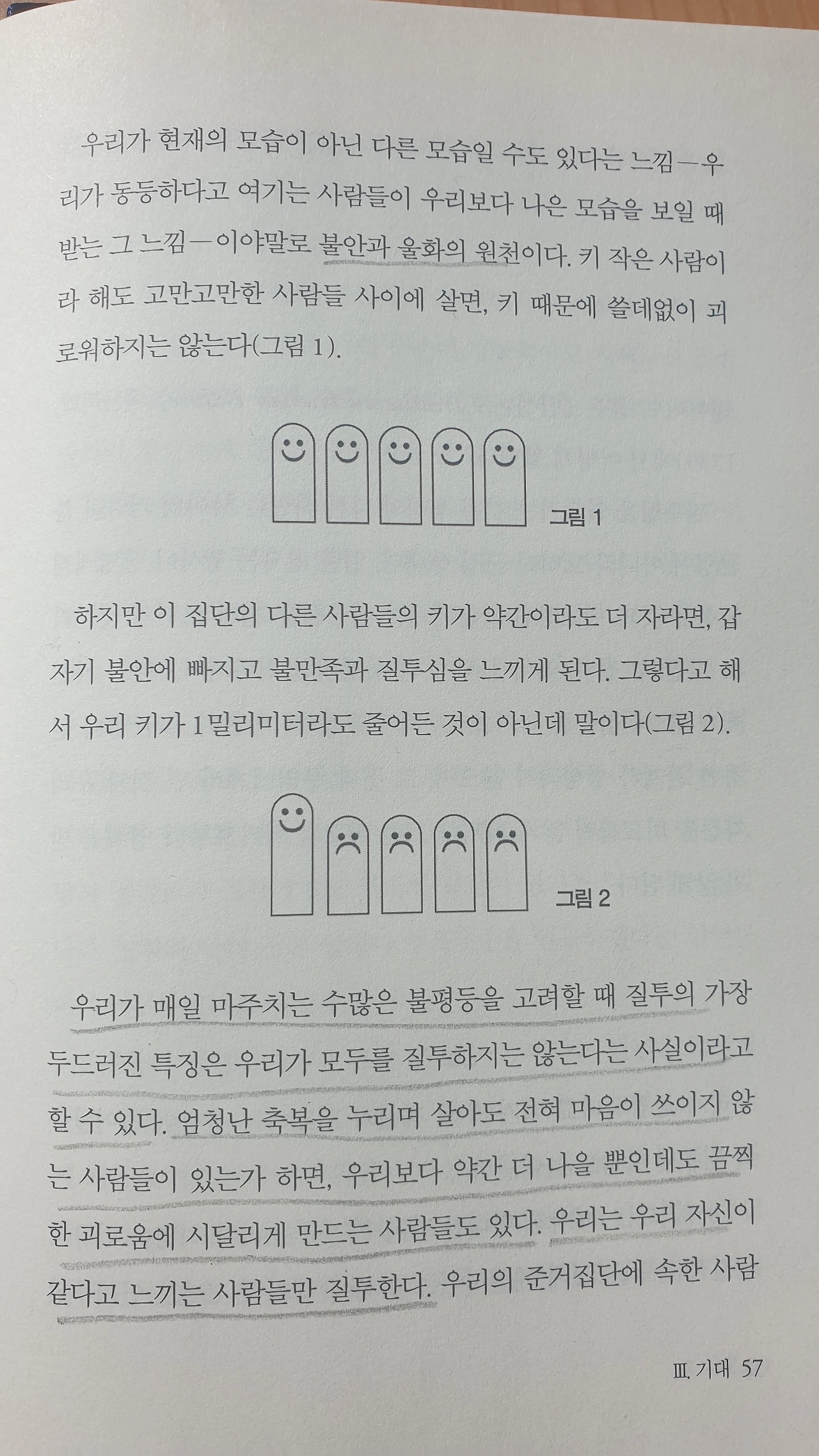 알랭 드 보통의< 불안>을 읽고 있다. 그는 현대인의 불안의 원인을 '애정결핍, 속물주의, 기대, 능력주의, 불확실성' 다섯가지로 말한다. 좀 더 어린 날 읽었다면 사랑이 가장 공감하는 원인이 되었을지도 모르겠다. 지금은 속물주의, 능력주의 같이 비교로 인한 불안에 더 공감간다. 뒤에서 불안의 해결방법을 철학, 예술, 정치, 기독교, 보헤미아로 나눠서 살펴보는데 아직 읽지 않았지만 벌써 기대된다.