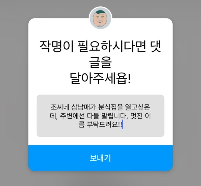 제일 어이없다는 반응을 보이던 여동생이 뜬금없이 가게 이름이 중요하다며 끼어든다. 그러더니 진짜 인스타 '키크니 작명소'에 사연을 보냈다. 어떤 이름일지 재밌을 것 같단다. 이름이 마음에 들면 진짜로 가게를 열려나? 제발 사연이 채택되어야할텐데. 갑자기 간절해진다.