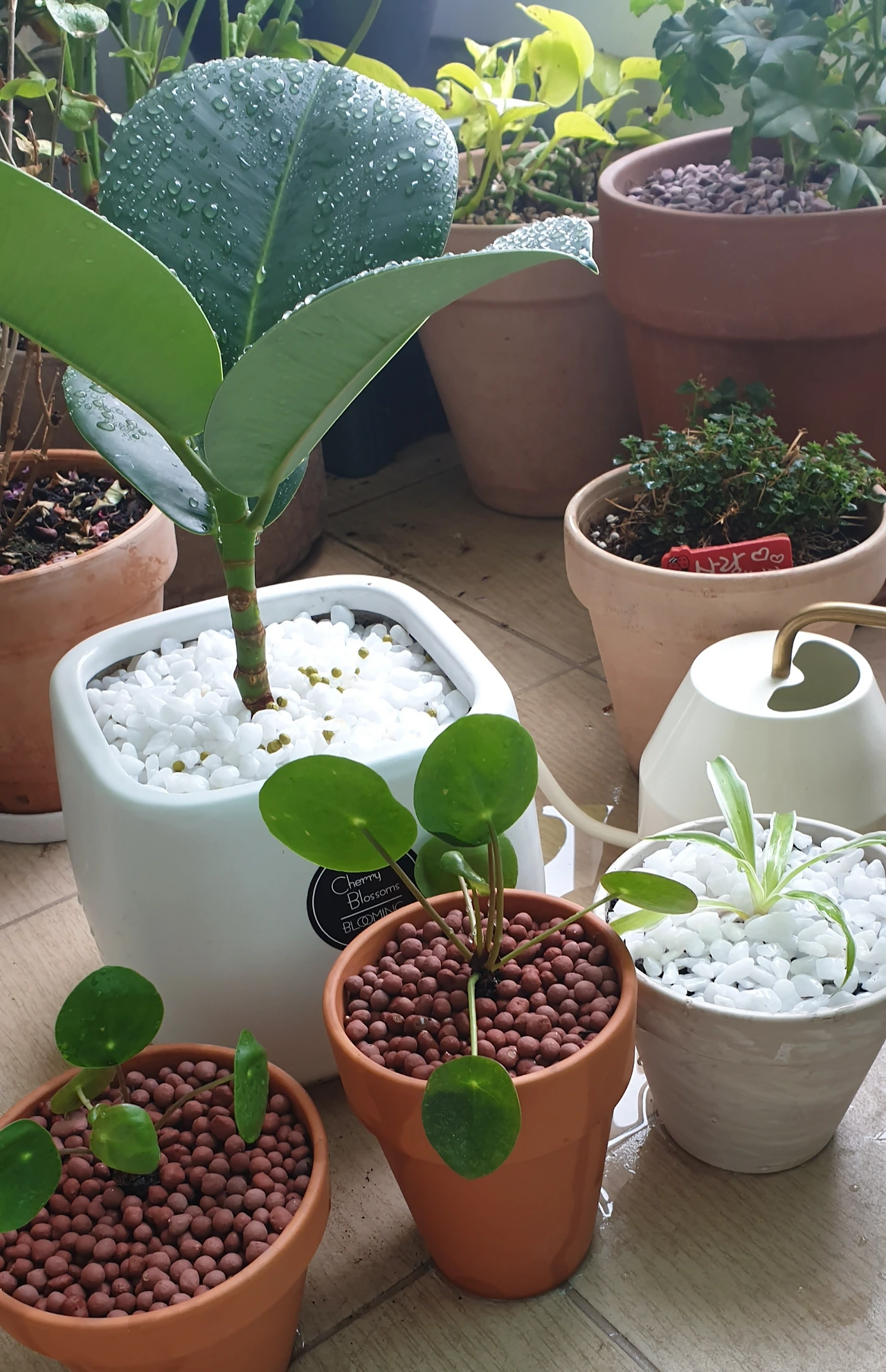 좁은 베란다에서 이리 움직이고 저리 움직이며 조그만 화분 네 개를 만들었더니 땀이 좀 났다. 안쪽 구석에 떨어진 마른 잎과 가지들을 치우고 베란다 물청소까지 싹 끝냈다. 뒷마무리까지 다 해도 시간이 얼마 안 지났다. 이제는 꽤 손에 익어 뚝딱뚝딱 금방 해치운다. 그래도 작은 아이들이니 간단히 마무리했지, 큰 아이들을 옮겨심으려면 허리도 아프고 손목도 아프다. 식물 돌보는 것도 버거워서 다 치우고 최소한으로 가꾸시는 친정부모님이 생각났다. 나이 들면 식물 시중도 힘들어진다.
