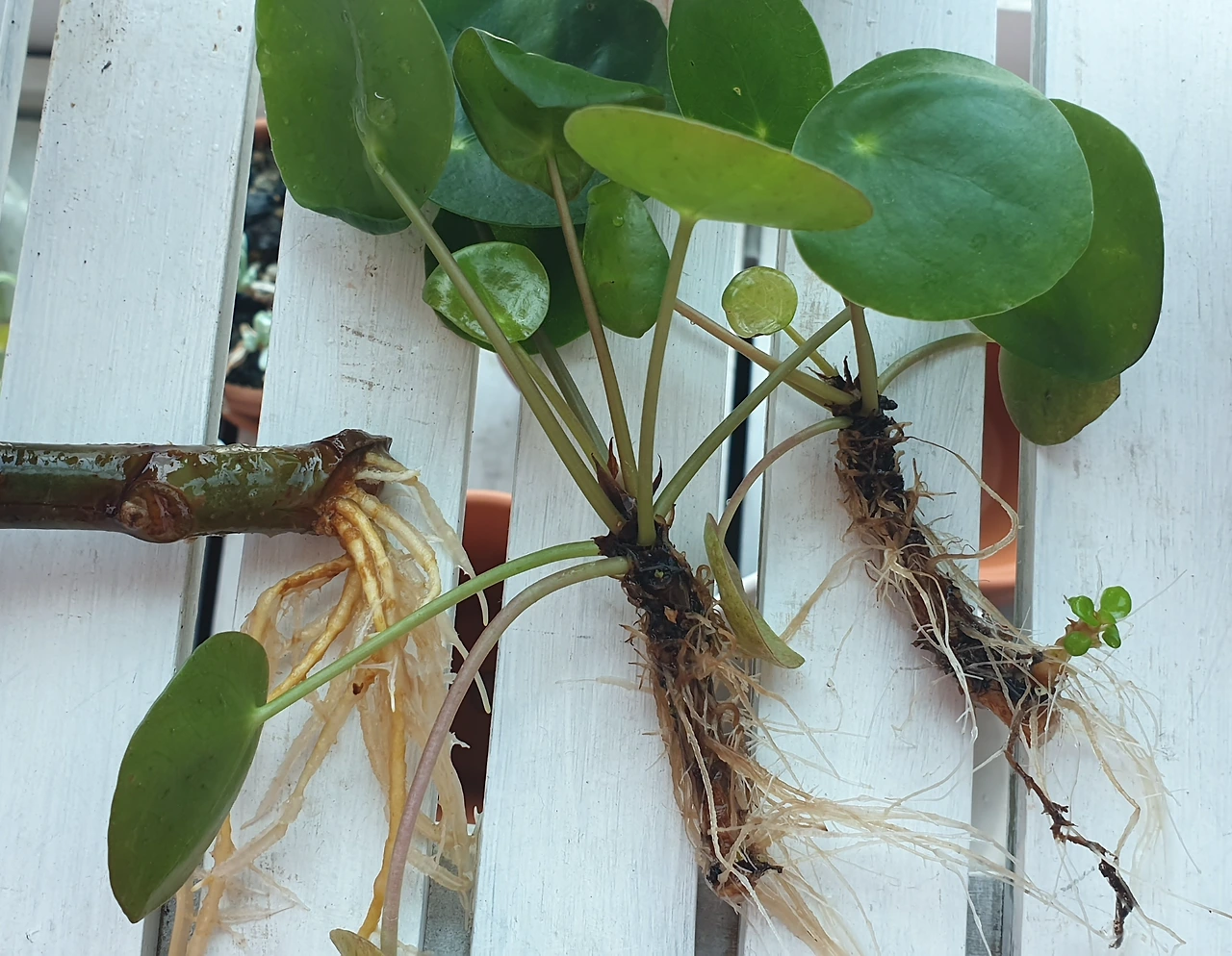 세상에, 저 조그만 페페는 그 와중에도 번식 뿌리를 뻗었다. 물속에서 저 초록잎을 어떻게 냈을까? 신기해서 저 아이도 따로 때내어 다른 화분에 올려놓았다. 과연 얼마나 크게 자라려나.