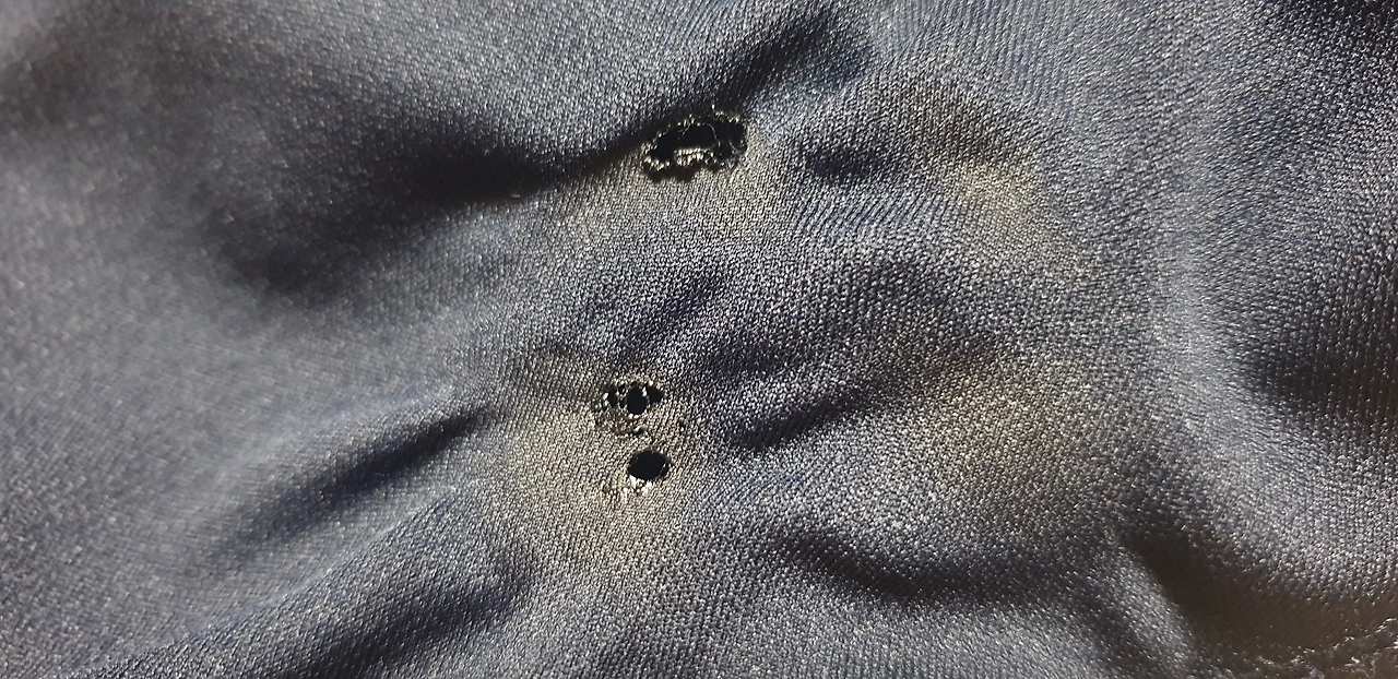 바로 헤어드라이기를 꺼내 '폴리에스테르 여름 교복'을 말리기 시작했다. 한 손으로는 옷을 돌리고 한 손으로는 미친 듯이 손목 스냅을 사용해서 위아래로 훑었다. 몇 분 말리다 아예 바지 주머니 입구에 드라이기를 끼워 넣었다. 바지가 이벤트 행사장 풍선처럼 부풀었다. 그대로 바닥에 내려놓고 옷을 갈아입었다. 어디서 약간 탄 냄새가 났다. ‘드라이기에 머리카락이 껴있었나?' 출근 준비를 마치고 교복과 드라이기를 분리하는데, 이런 망할 폴리에스텔 같으니라구! 주머니가 녹아서 눌러 붙었다. 드라이기 열로 딱딱하게 구워진 주머니에 조그맣게 구멍이 두 개나 뚫렸다. 그래도 바깥이 아니라 안쪽이라 표가 안 난다. 아들아 미안하다, 이제 이쪽에 동전은 못 넣겠구나.