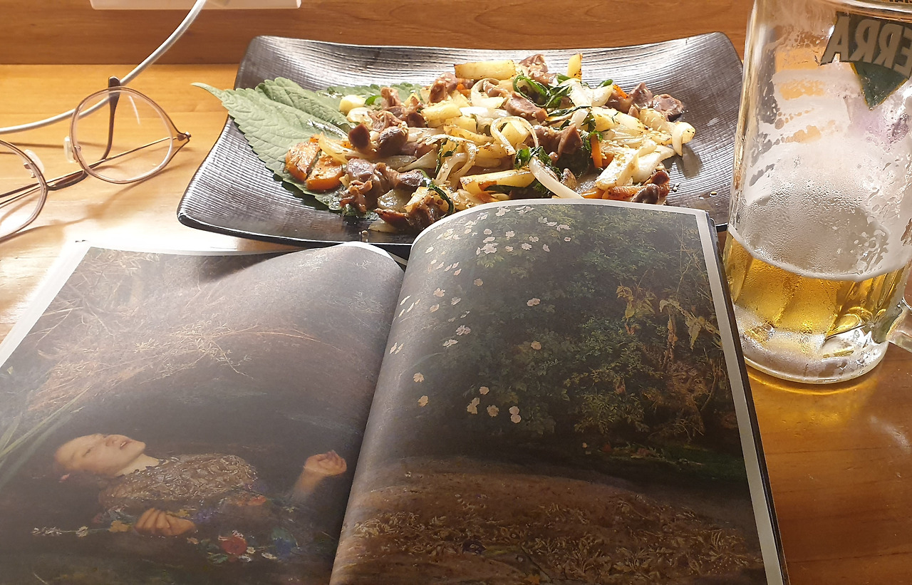 첫 모금을 마시고 나자 그제야 긴장이 풀리고 숨이 쉬어졌다. 천장에 달린 보틀과 한 쪽 벽면을 장식한 거울도 눈에 들어왔다. 곧이어 후추향과 함께 양파와 채소를 볶을 때 나는 달큰한 향이 풍겨왔다. '치이이익'하고 기름이 튀겨지는 소리도 들렸다. 누군가가 나를 위해 음식을 준비하는 행복한 기다림의 시간. 나초따위로 내 입맛을 버릴 수는 없었다. 기본안주는 치워두고 읽던 책을 꺼냈다. 한 장 한 장 그림을 보며 책장을 넘기는 사이, 내 사랑 닭똥집이 나왔다.