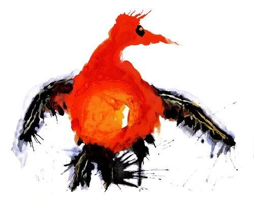 운보가 청각장애인이라는 점은 널리 알려진 사실이고, 내면과 소통이라는 키워드로 이 그림을 해석하기는 어렵지 않을거다. 붉은 새이니 불새 혹은 주작이라고 볼 수도 있다.