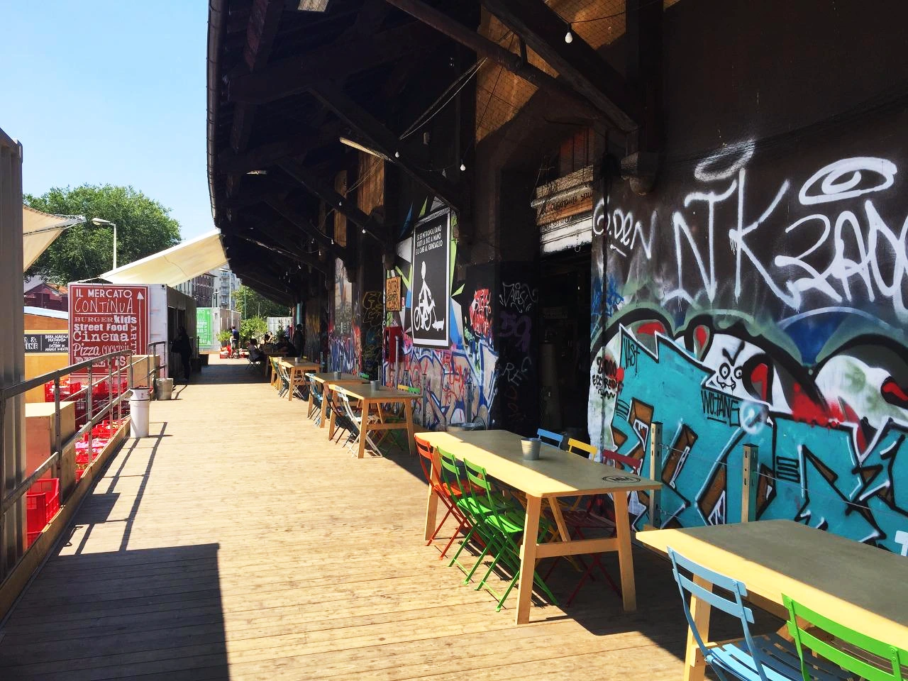 라는 이름을 가진 이곳은 '시장'이라는 단어를 들었을 때 쉽게 떠오르는 이미지와는 달랐습니다. 이름에 대도시가 붙어있는 것에서도 알 수 있듯이 아주 깔끔하고 현대적인 공간이었어요. 기차역 가까이에 있는 버려져있는 곳을 개조하고 밝은 색으로 칠해서 꾸며놓은 시장이었습니다. 원래부터 외관이 화려(?)한 건물이었던 것은 사실입니다. 그래피티가 정말 많은 곳이거든요.