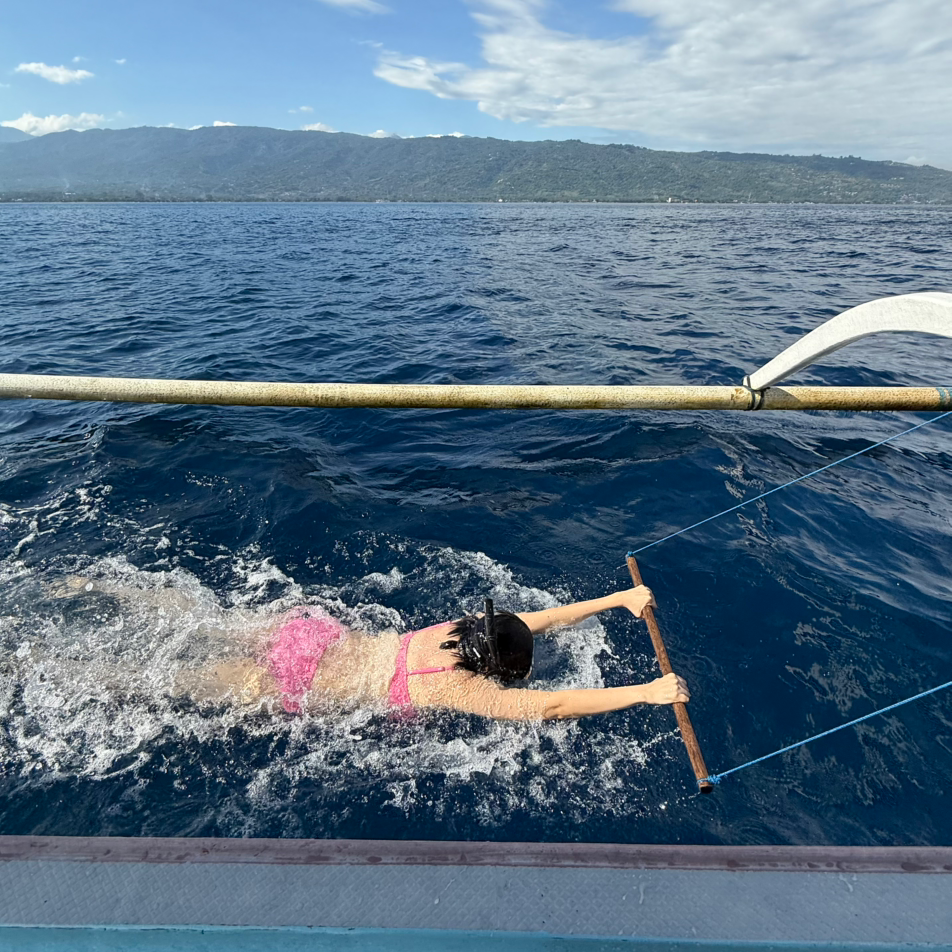 3번째 온 발리인 만큼 가보지 않은 지역을 가보고자 했고, 그래서 로비나&멘장안에 왔다. 멘장안은 수심이 낮고, 형형색색의 물고기들이 있는 반면 로비나의 수심은 깊이를 알 수 없을 정도로 깊었다. 물속에 돌고래가 있으면, 돌고래가 보이고, 돌고래가 가버리면 아무것도 안 보이는 정말 파-란 바다였다.