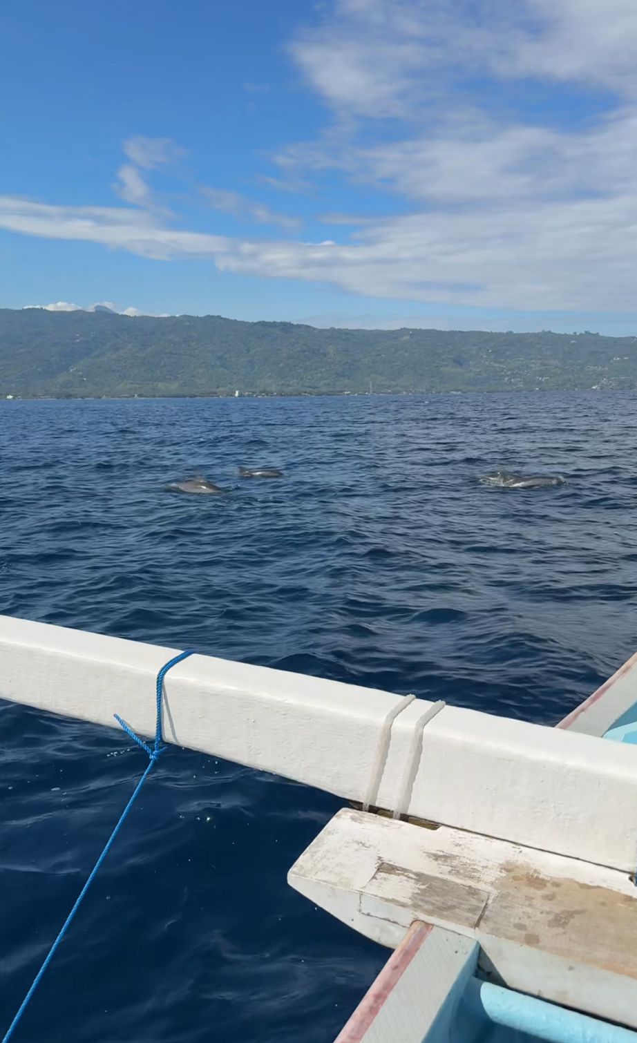 1) 돌고래 무리가 보이는 순간 선장님은 배를 끌고 '호도도' 간다. 그 찰나에 우리는 보트와 연결되어 있는 나무 막대기를 잡고 뛰어내려야 된다. 그렇지 않으면 돌고래가 빠르게 수영해 가버리기 때문이다.