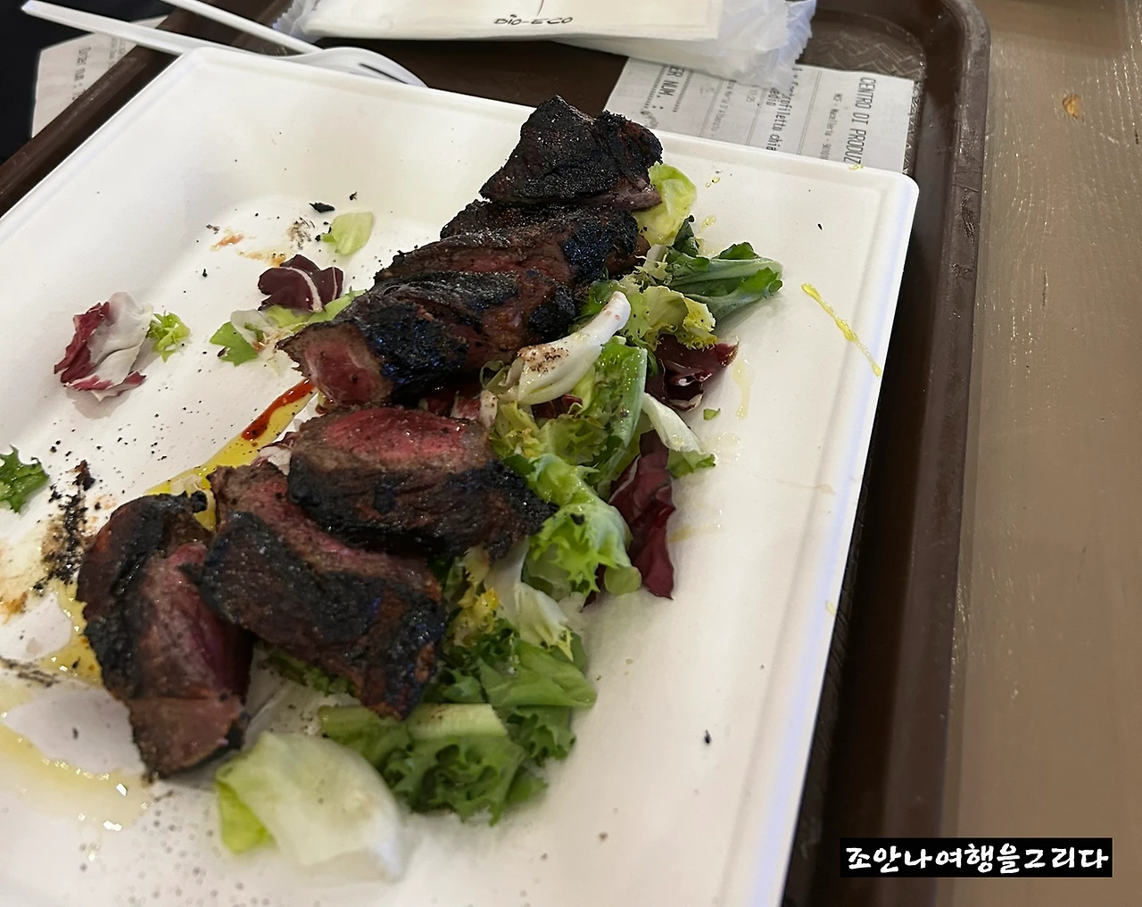피렌체 첫날 저녁 중앙시장에서 스테이크를 먹은 경험이 있는 추가 덧붙인다. “어제 중앙시장에서 센 불에 바짝 태운 질긴 스테이크에 실망했는데 완전 다른 맛인데요. 이럴 줄 알았으면 어제 중앙시장을 가지 않고 티본스테이크를 먹을 걸 그랬어요.”