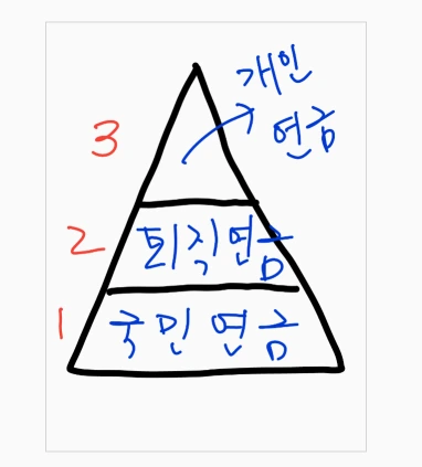 암울한 상상은 가지 뻗기를 시작했고, 은퇴를 향한 카운트다운이 시작되었습니다.연금은 이런 노후에 대한 불안감으로부터 일정 부분 해소시켜 주는 겁니다.살다 보면 자녀 학비, 자녀 결혼등 목돈이 빠져나가는 시기가 꼭 도래합니다. 그간 열심히 일해 벌었던 목돈은 그때 사용하게 될 확률이 높습니다. 미래의생활을 위해 미래의 현금흐름을 만들어 놓아야 합니다. 그 현금흐름은 바로 저 3층짜리 연금 피라미드에서 시작하는 겁니다.