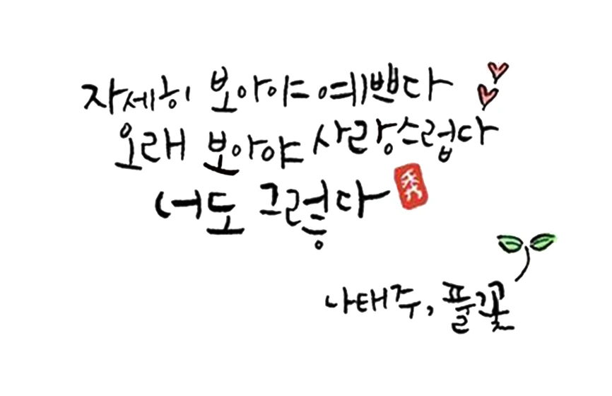 얼마나 소박하고 청량한 시인지 마음에도 한줄기 바람이 시원하게 스칩니다. 욕심이 포화상태인 세속에서 살다보니 많이 지치고 마음도 덩달아 황폐해진 터에 이런 글을 만나니 행복합니다. 이런게 바로 문학의 힘이 아닐까 싶습니다. 박철 시인의 '사랑'에 '문학'을 대입해 봅니다.