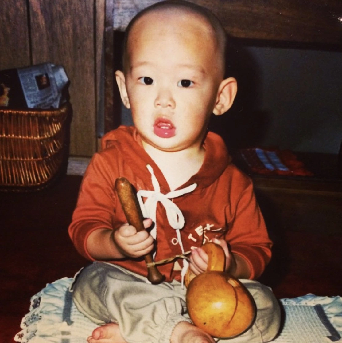 라마의 동자승같이 보였다. 장난 삼아 목탁을 손에 쥐어주고 찍은 어릴 적 사진이 있다.