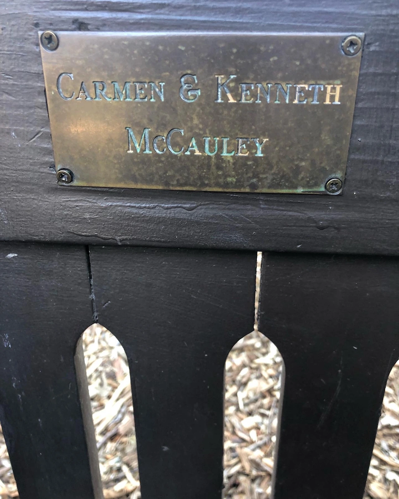 카르멘과 케네스 맥컬리 씨의 이름이 새겨진 벤치에 앉아 파커 J 파머의 에세이 <모든 것의 가장자리에서>를 읽었다. On the brink of everything , 노년의 시선으로 본 삶 이야기이다. 노년의 작가가 살아본 경험으로 하는 말.