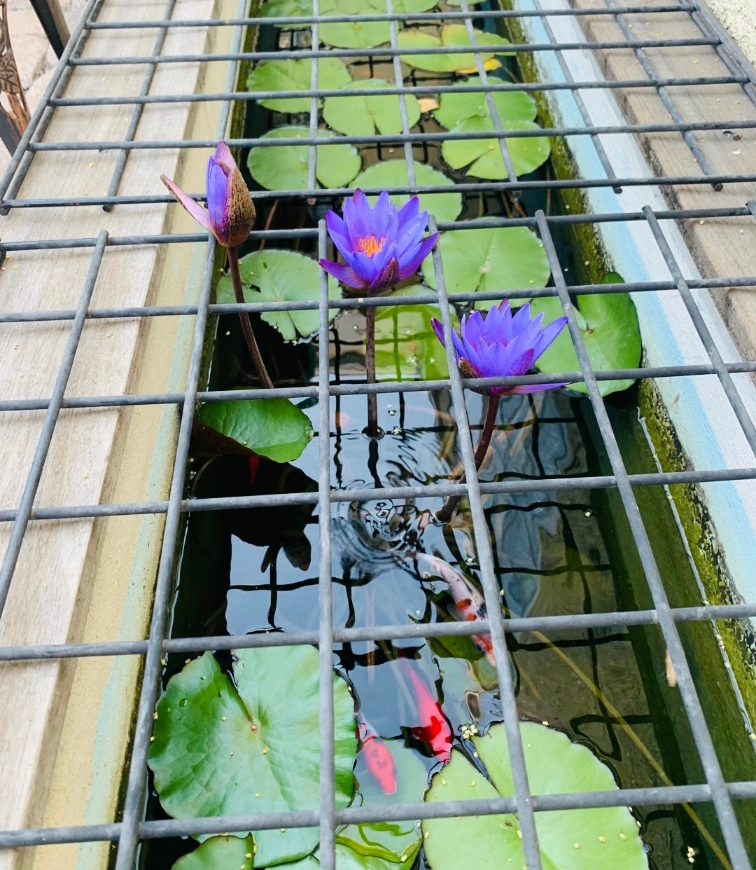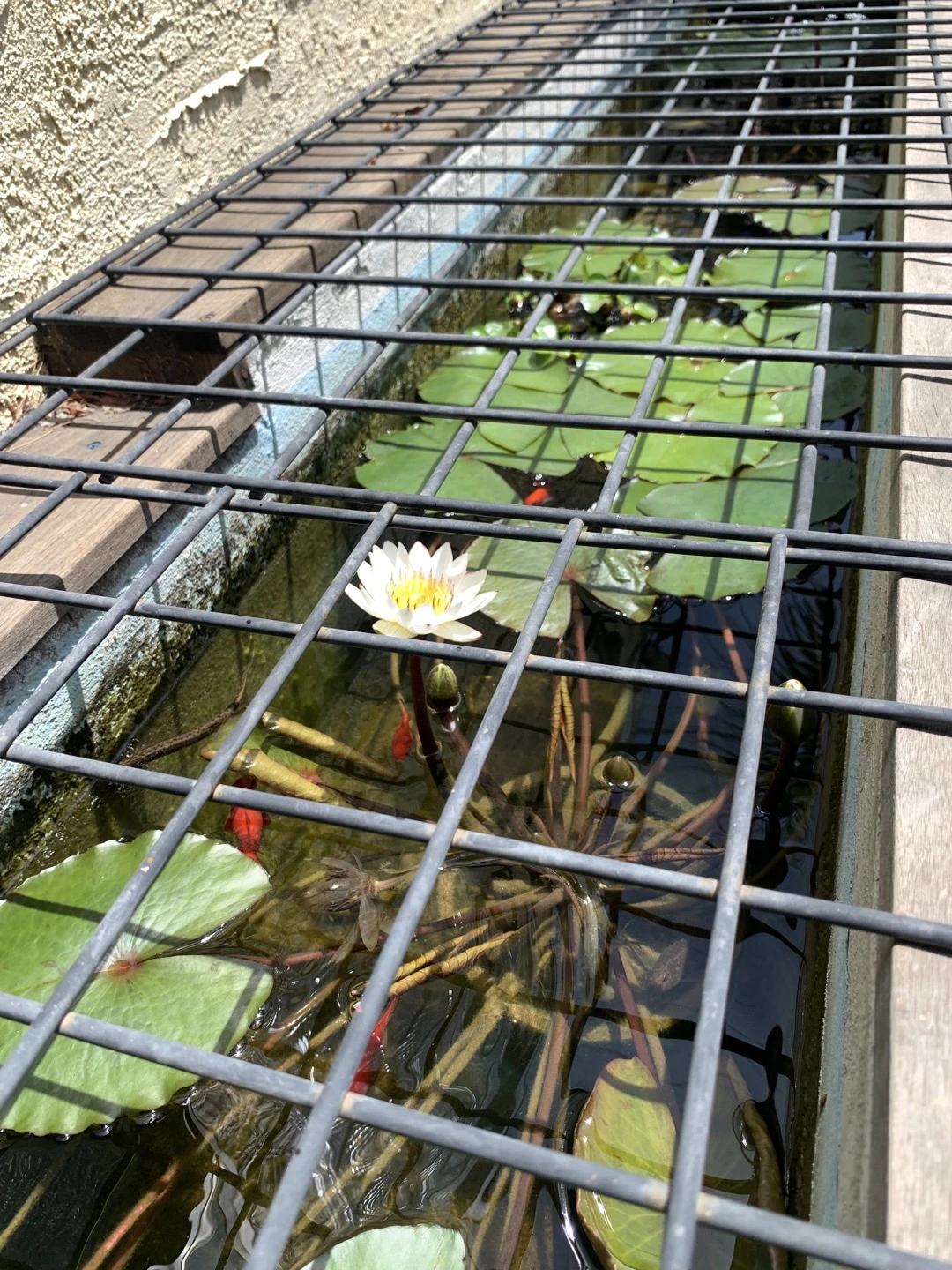 우리 집 현관에 볼품없는 작은 연못이 있는데 동네길을 지나는 꼬마들, 개 산책시키는 사람들, mailman, upsman 등은 잠깐 숨을 돌리는 지점이다. 그 앞의 의자에 앉아 금붕어를 들여다보고 부레옥잠과 수련을 보고 간다. 짧은 시간이지만 힐링 스팟이다. 이때 찬 생수병을 주면 택배기사들은 무척 고마워한다.