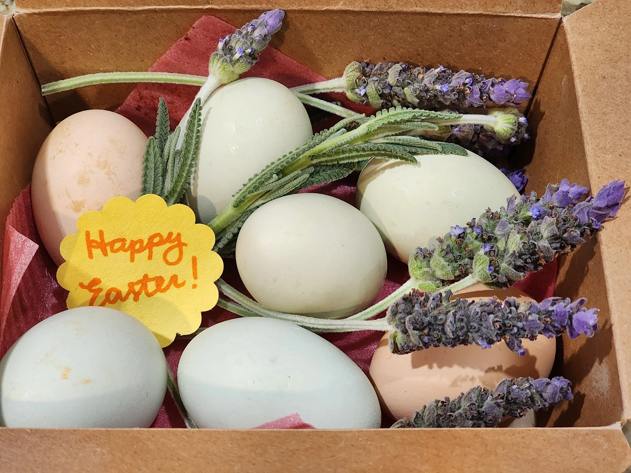 밥도 사주시고 직접 키운 닭들이 낳은 색색의 달걀에 라벤더로 장식하고 ‘해피 이스터’ 싸인을 달아 선물로 주셨다. 배국희 선배님이 만들어주신 올해의 특별한 부활절, 기억에 오래 남을 것이다.