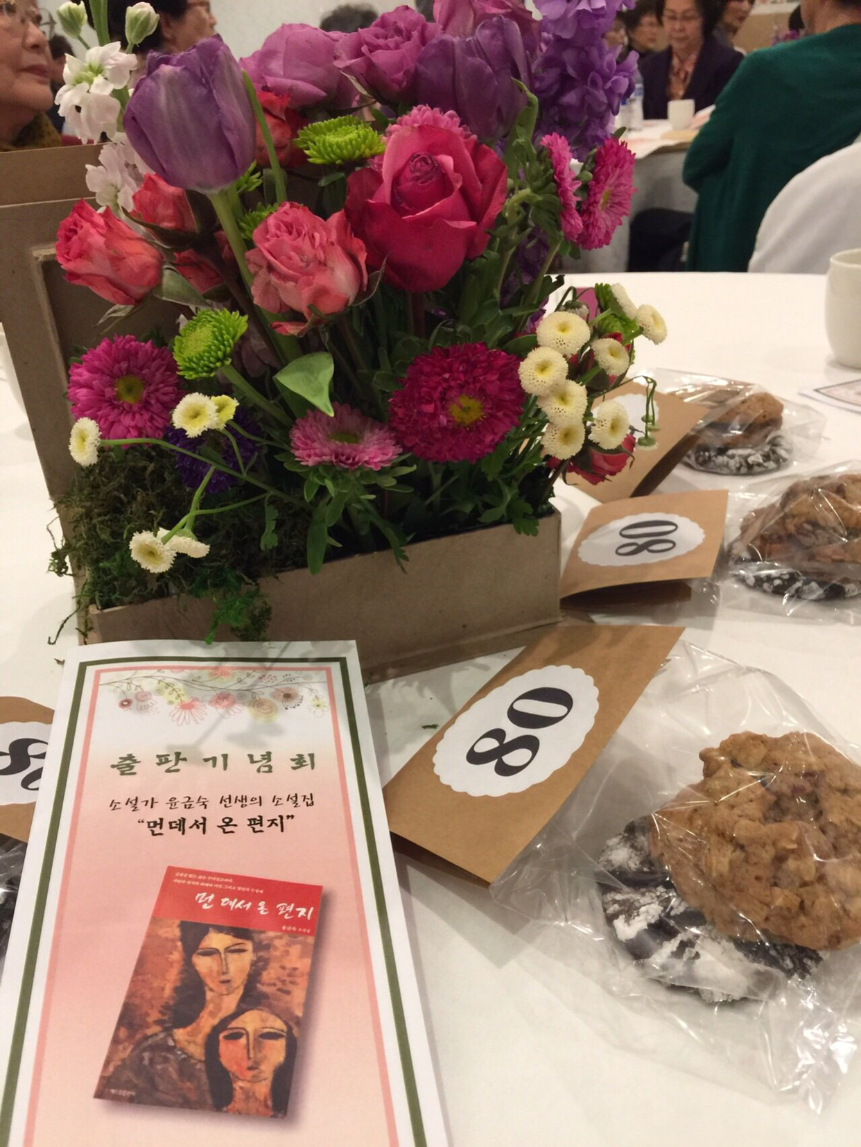 첫 수필집을 출간한 수필가는 남편의 선배이나 문단에선 나의 후배로 등단 15년 만에 첫 책을 냈다. 타고난 부지런함과 열정으로 자수성가한 성공한 이민자이다. 지금은 많은 단체의 리더로 봉사도 열심히 하는 유명인사가 되었다. 초대받은 인맥들도 화려하고 파티도 호화로워서 출판기념회라기보단 성공을 축하하는 모임 같았다. 눈이 호강했다.